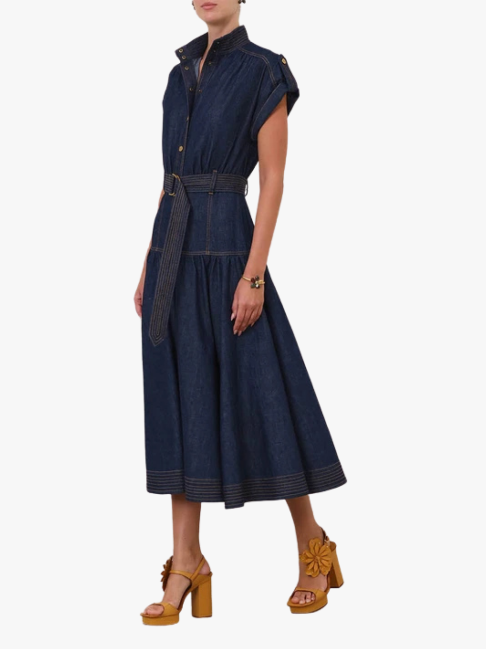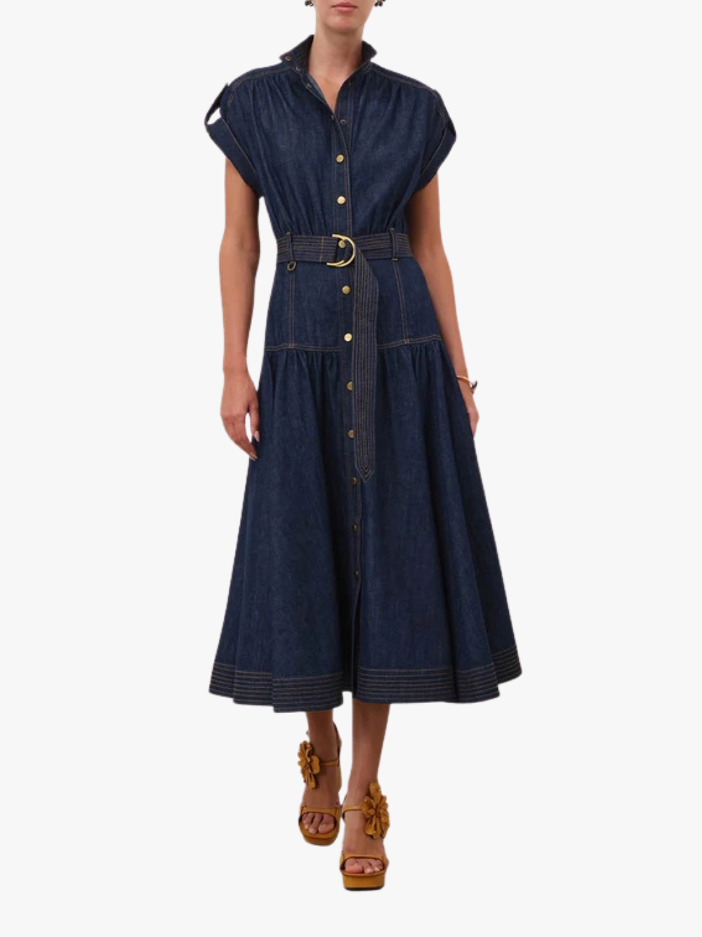 Das Denim Midi Dress in Harbour Blue von Zimmermann mit folgenden Merkmalen:
