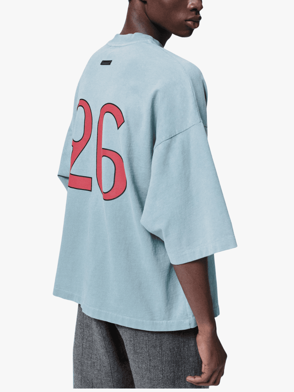 Die 26 SS T-Shirt in Hellblau von Fear of God überzeugt durch ihren hochwertigen, schweren Baumwoll-Jersey, der für eine langlebige und angenehme Haptik sorgt. Das Garment-Dye-Verfahren mit Sun-Fade-Behandlung verleiht dem T-Shirt eine authentische Vintage-Optik, während handgedruckte Grafiken im Heritage-Athletic-Stil einen markanten Look erzeugen. Ergänzt wird das Design durch einen gerippten Rundhalsausschnitt sowie das ikonische Vier-Stich-Label am Nacken.