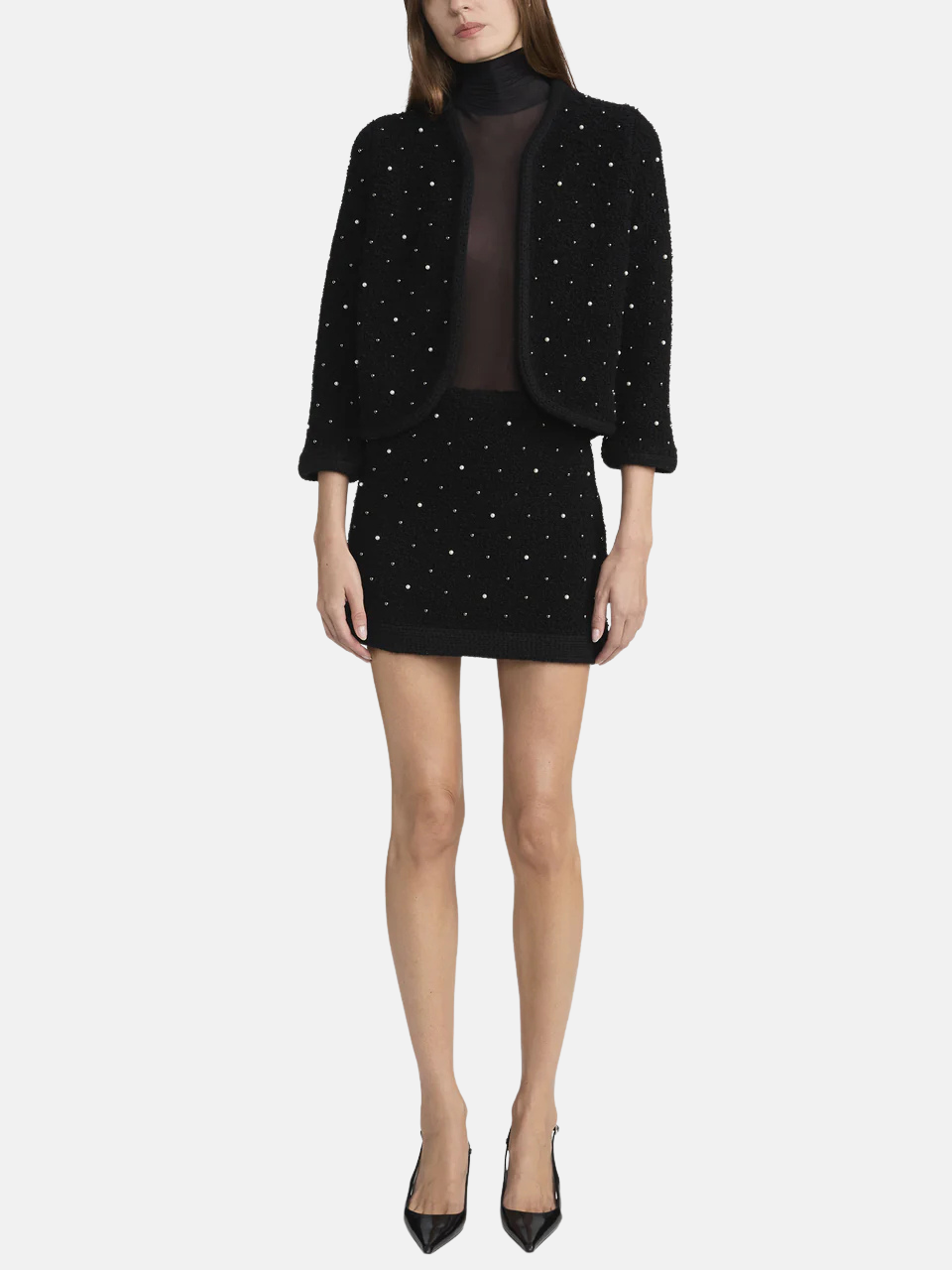 - Elegant verzierte Jacke mit funkelnden Applikationen entlang des Kragens und der Kanten für einen luxuriösen, Statement-Look