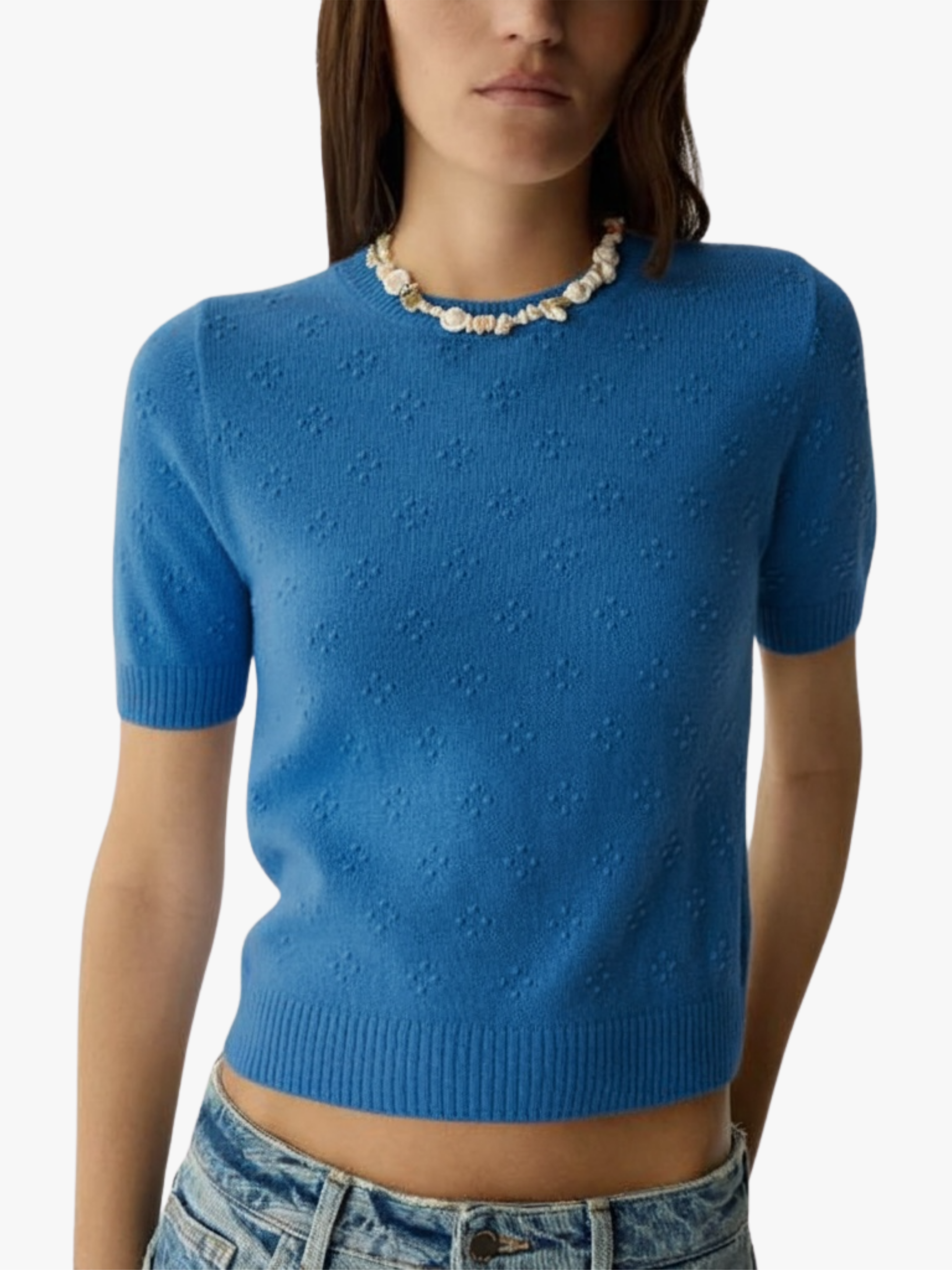• Leichtes Popcorn-Strick-Jersey-Design mit strukturierter Oberfläche für ein elegantes, texturiertes Finish.