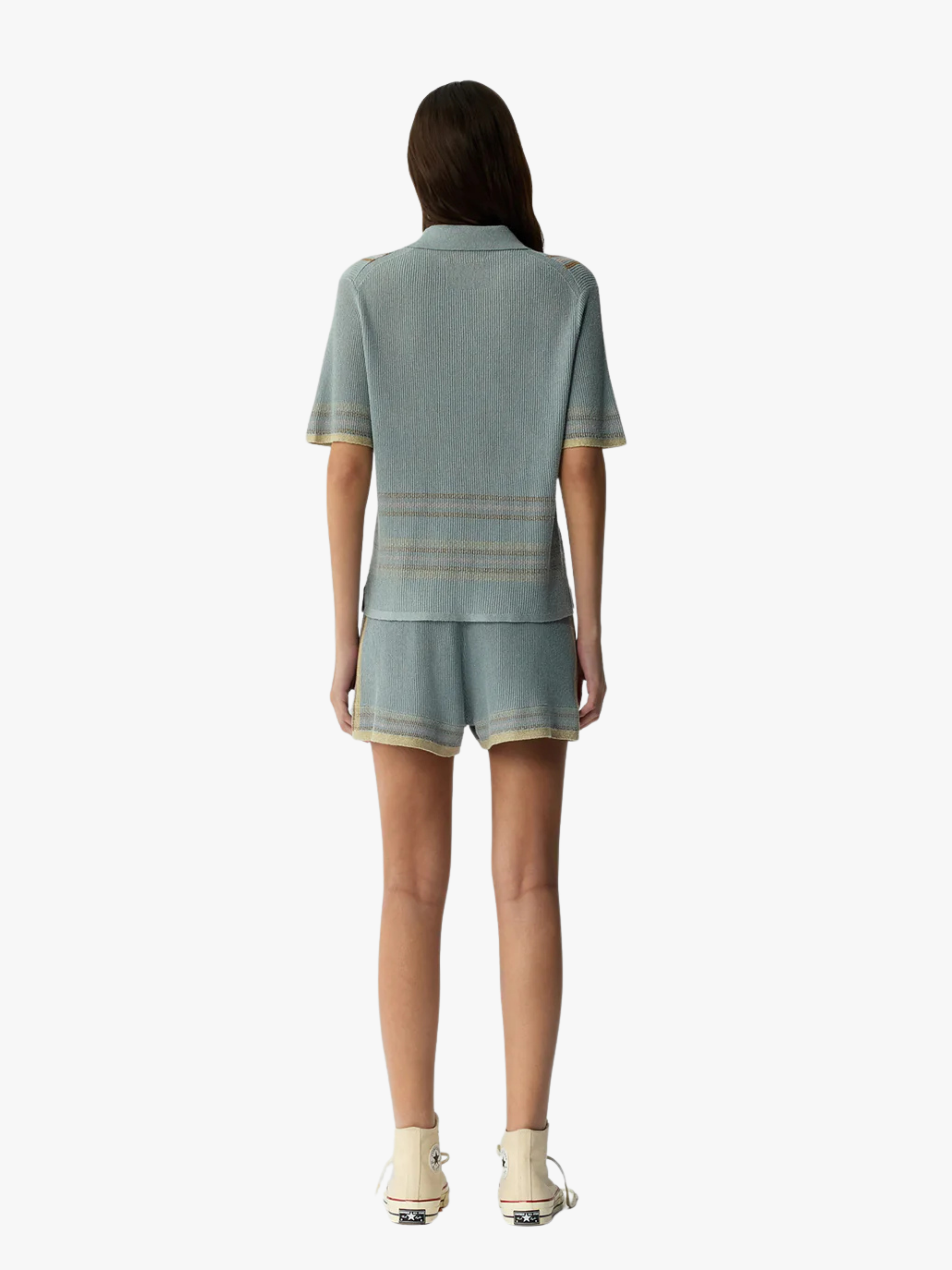 • Kurze Ärmel mit kontrastierendem Streifendetail am Saum.