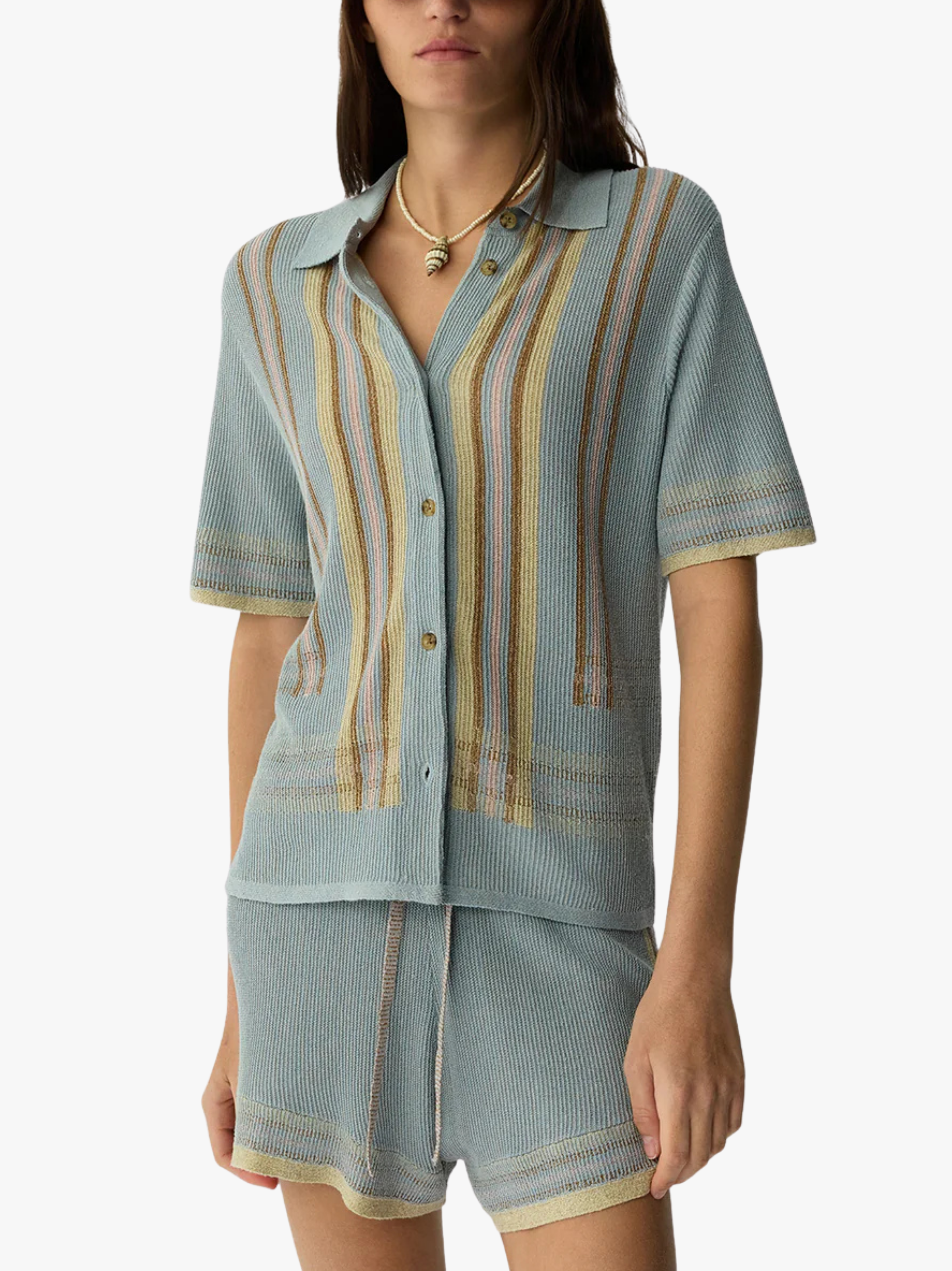 • Leichtes, strukturiertes Streifenhemd mit entspannter Silhouette für warme Tage.
