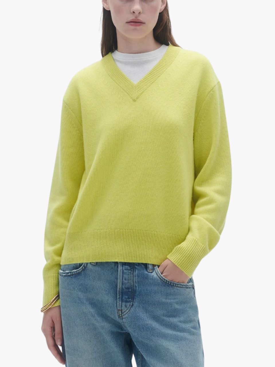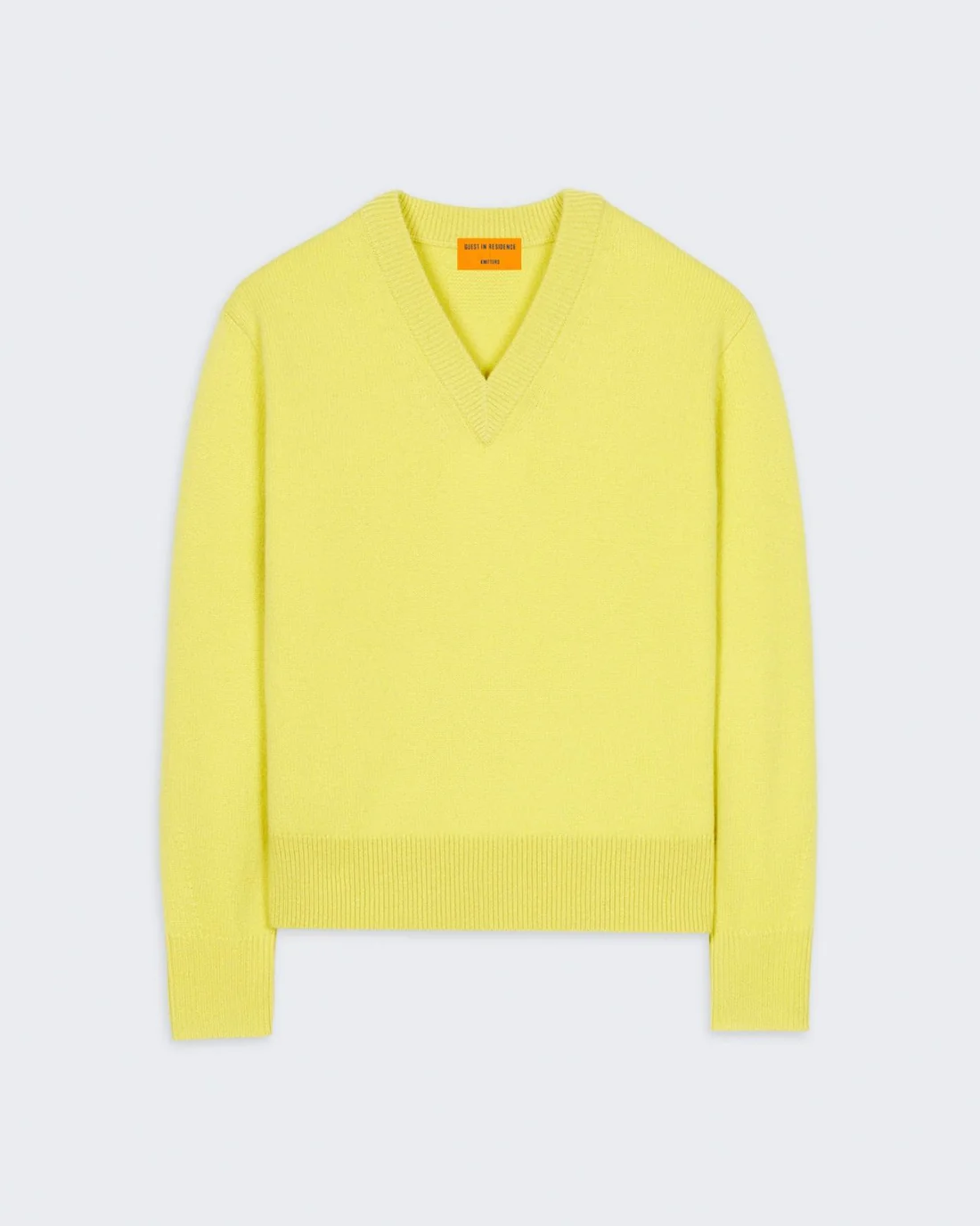 Pullover von Guest in Residence mit folgenden Eigenschaften: Damengröße, für eine entspannte Passform, V-Ausschnitt, gerippter Hals, Bündchen und Saum, GIR-Branding hinten in der Mitte. Herstellerinformationen: Guest in Residence, Apparel & Fashion, 3 E 26th St, Paterson, New York, 07514, Vereinigte Staaten. E-Mail: contact@guestinresidence.com