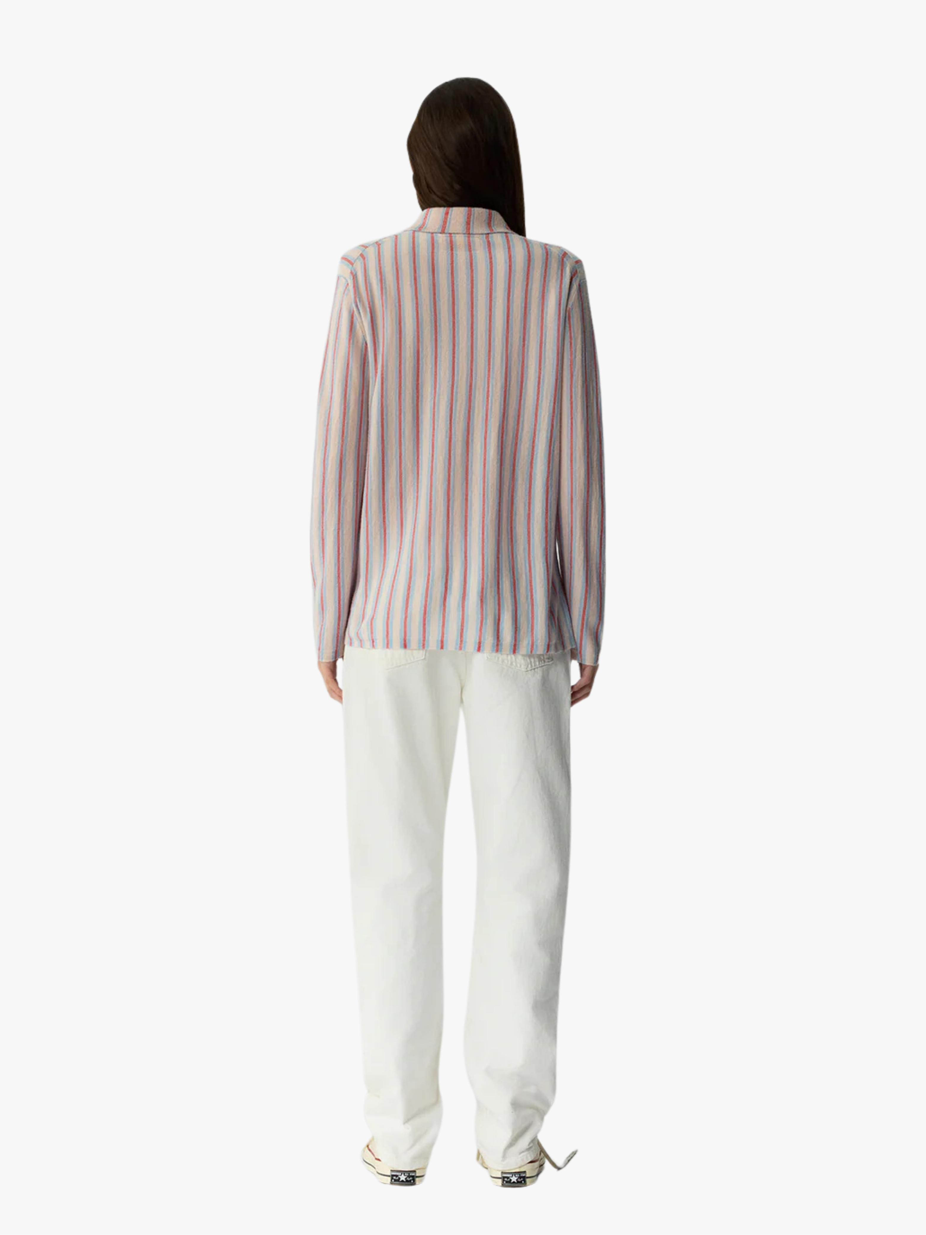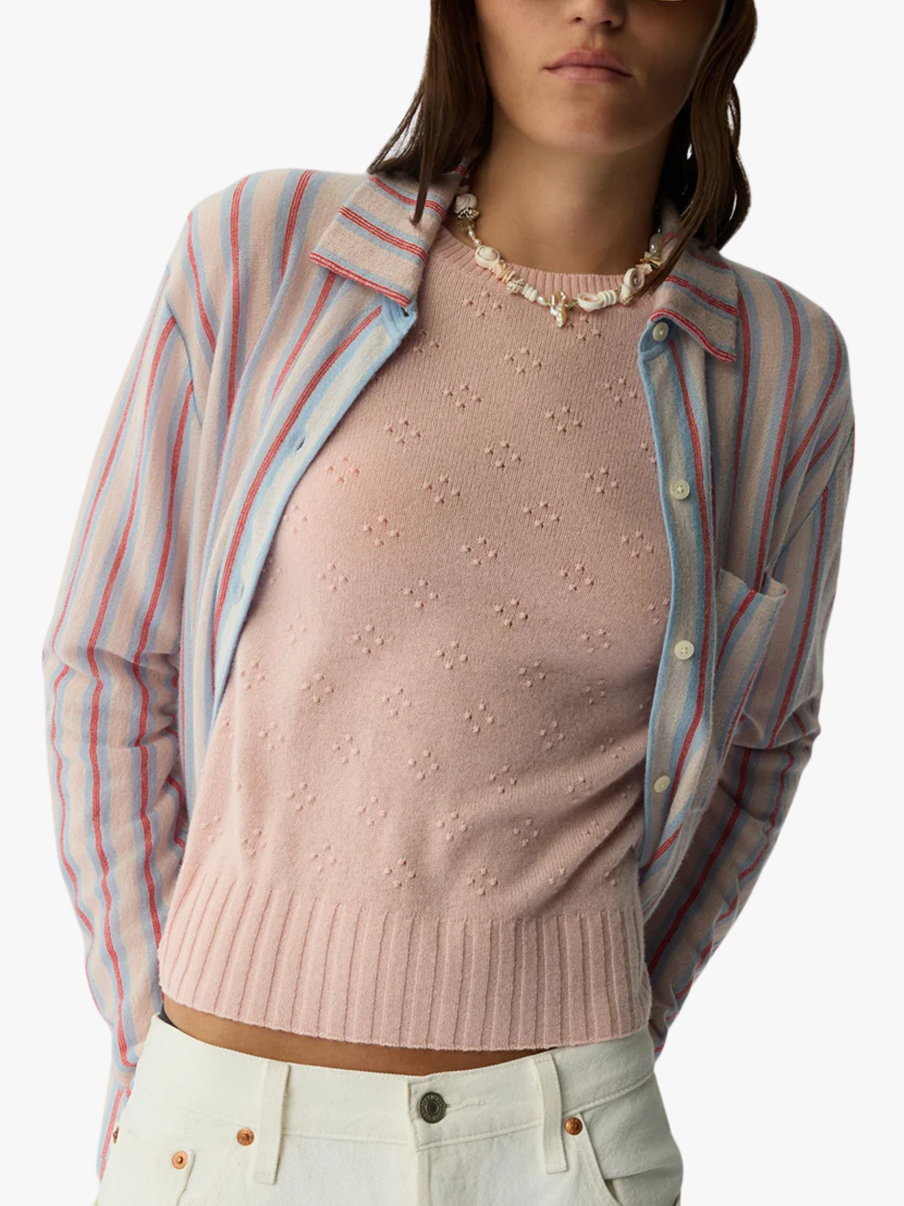 • Federleicht gestricktes, horizontales Cashmere‑Shirt mit feinen, dezenten Streifen.