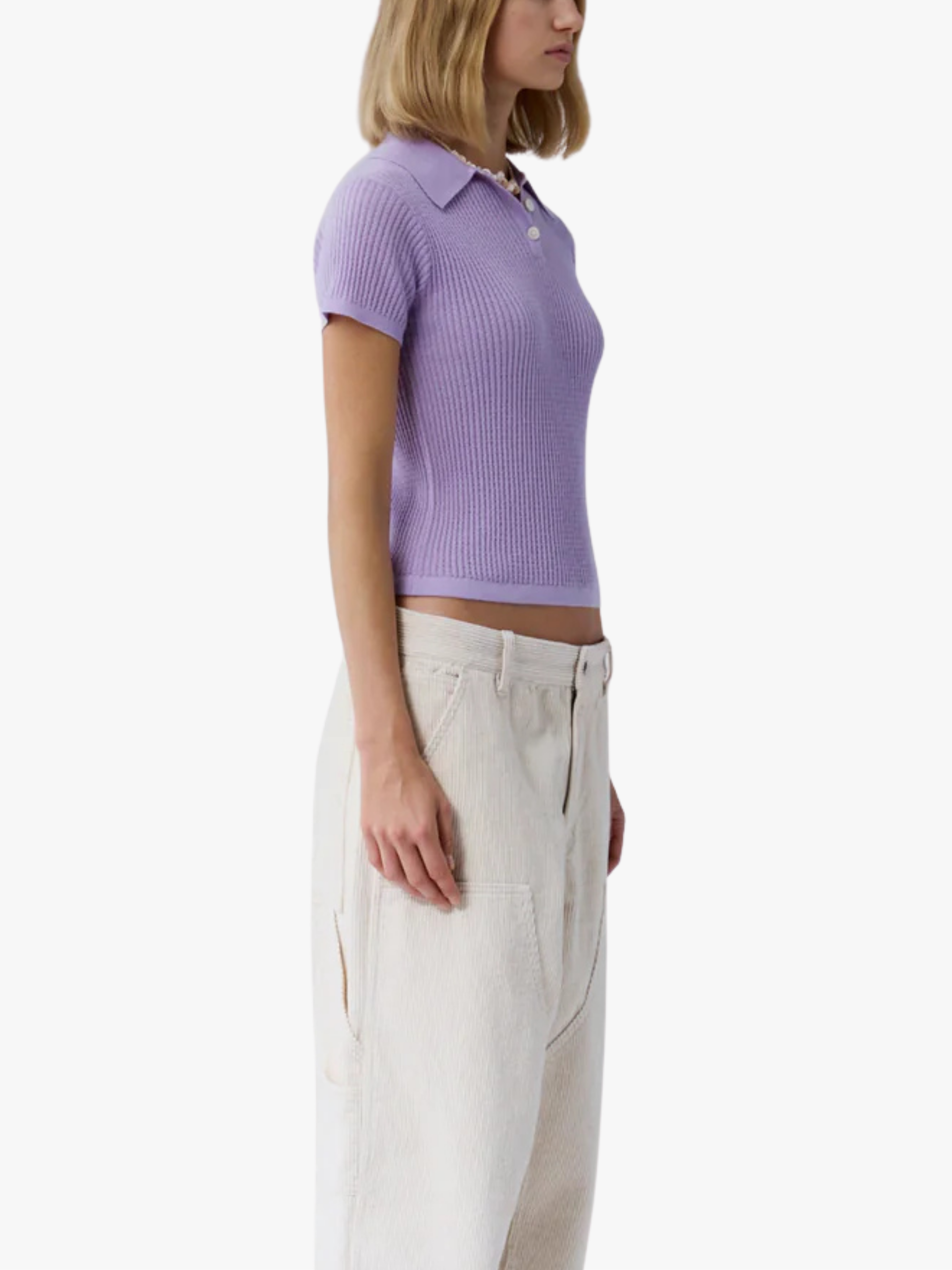 Der Shrunken Cashmere Polo Top von Guest In Residence in Lila mit folgenden Merkmalen: