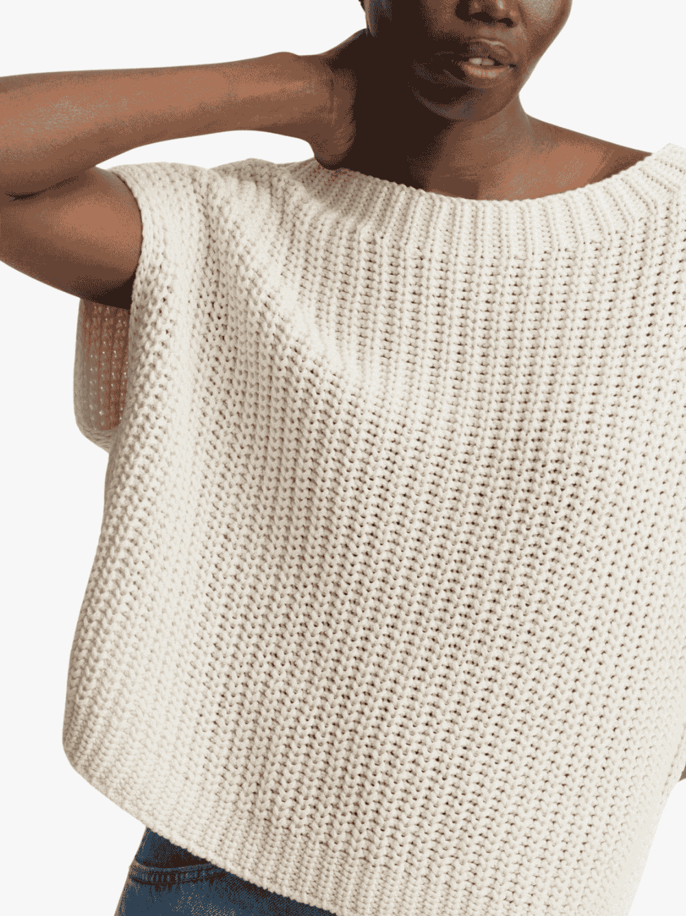 • Ärmelloses Design mit geripptem Kragen und Saum für moderne Linienführung und leichte Eleganz.