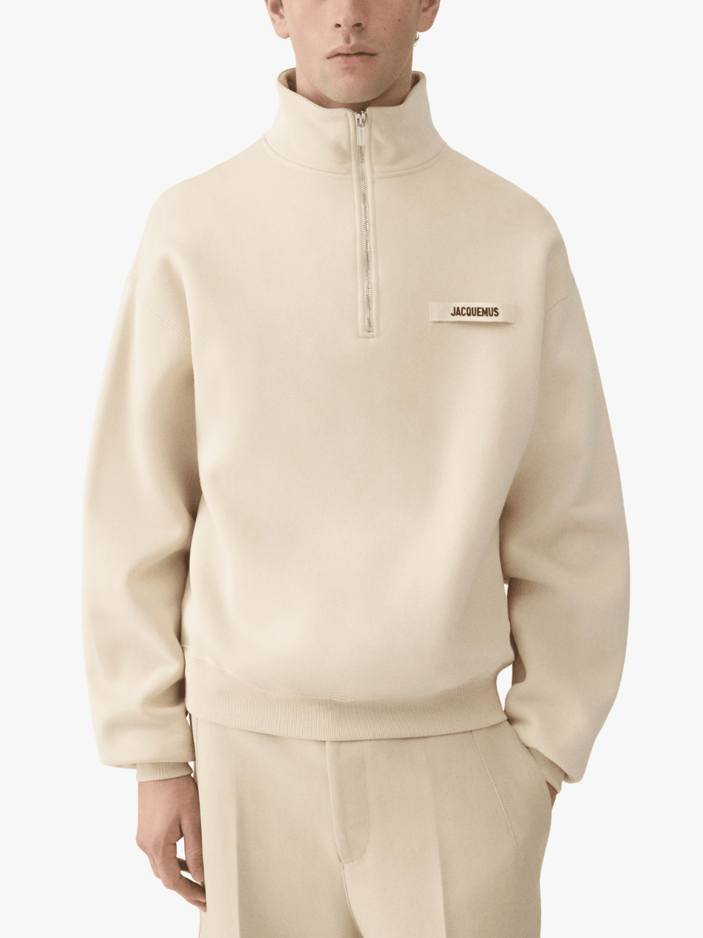 Das Gros Grain Sweatshirt mit Reißverschluss und Rollkragen in Beige von Jacquemus mit folgenden Merkmalen: