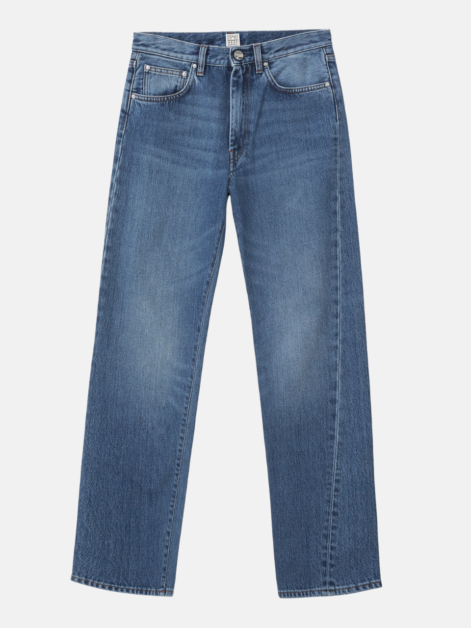 Die Twisted‑Seam Denim Jeans in Washed Blue von Toteme mit folgenden Merkmalen: