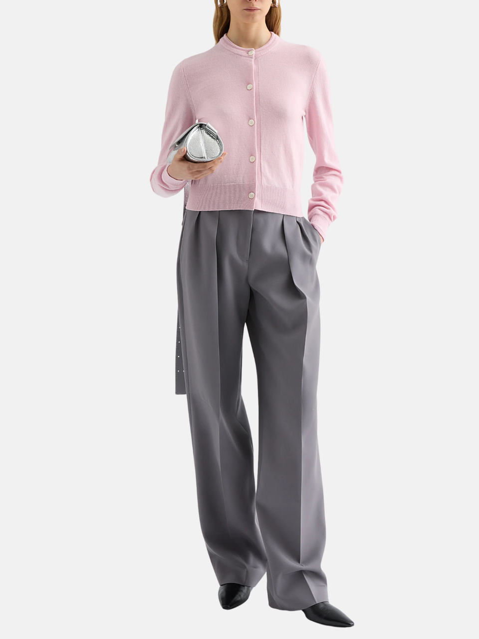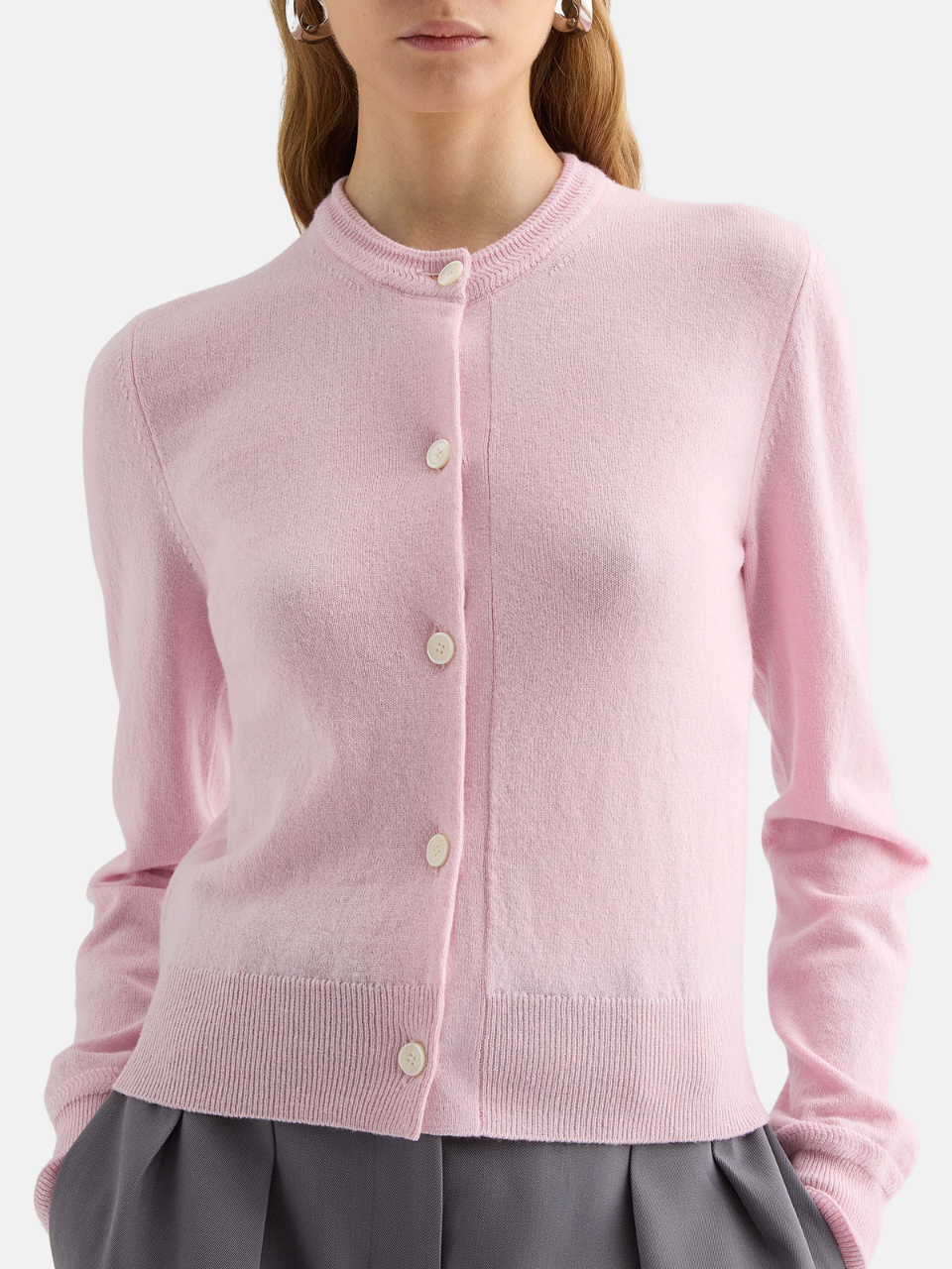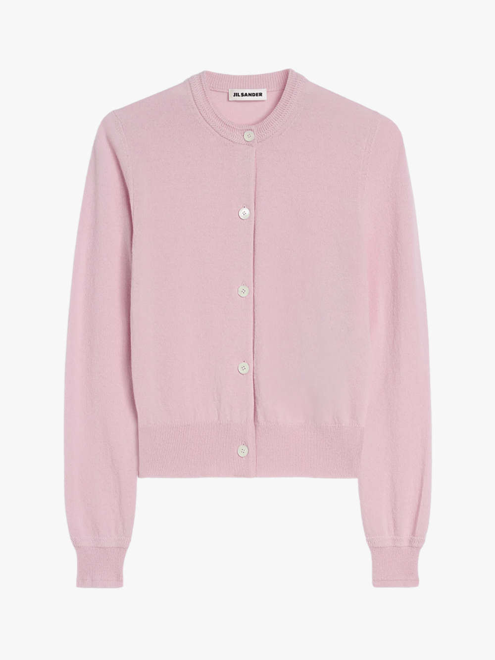 Der Cardigan mit Rundhalsausschnitt aus leichter Wolle in Candy Pink von Jil Sander mit folgenden Merkmalen: