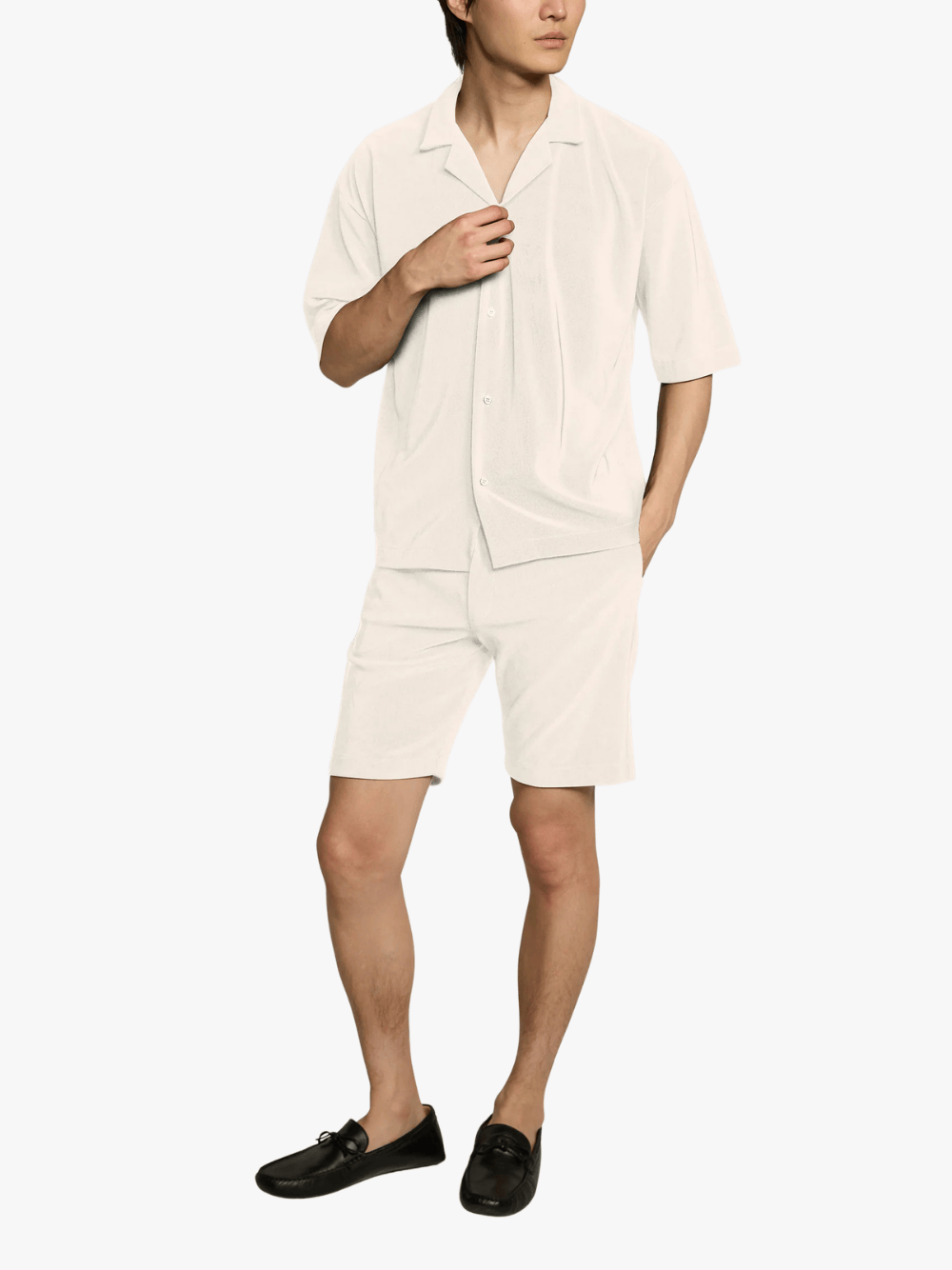 • Elegante Viskose‑Shorts mit feiner Barré‑Struktur für eine subtile, strukturierte Oberfläche.