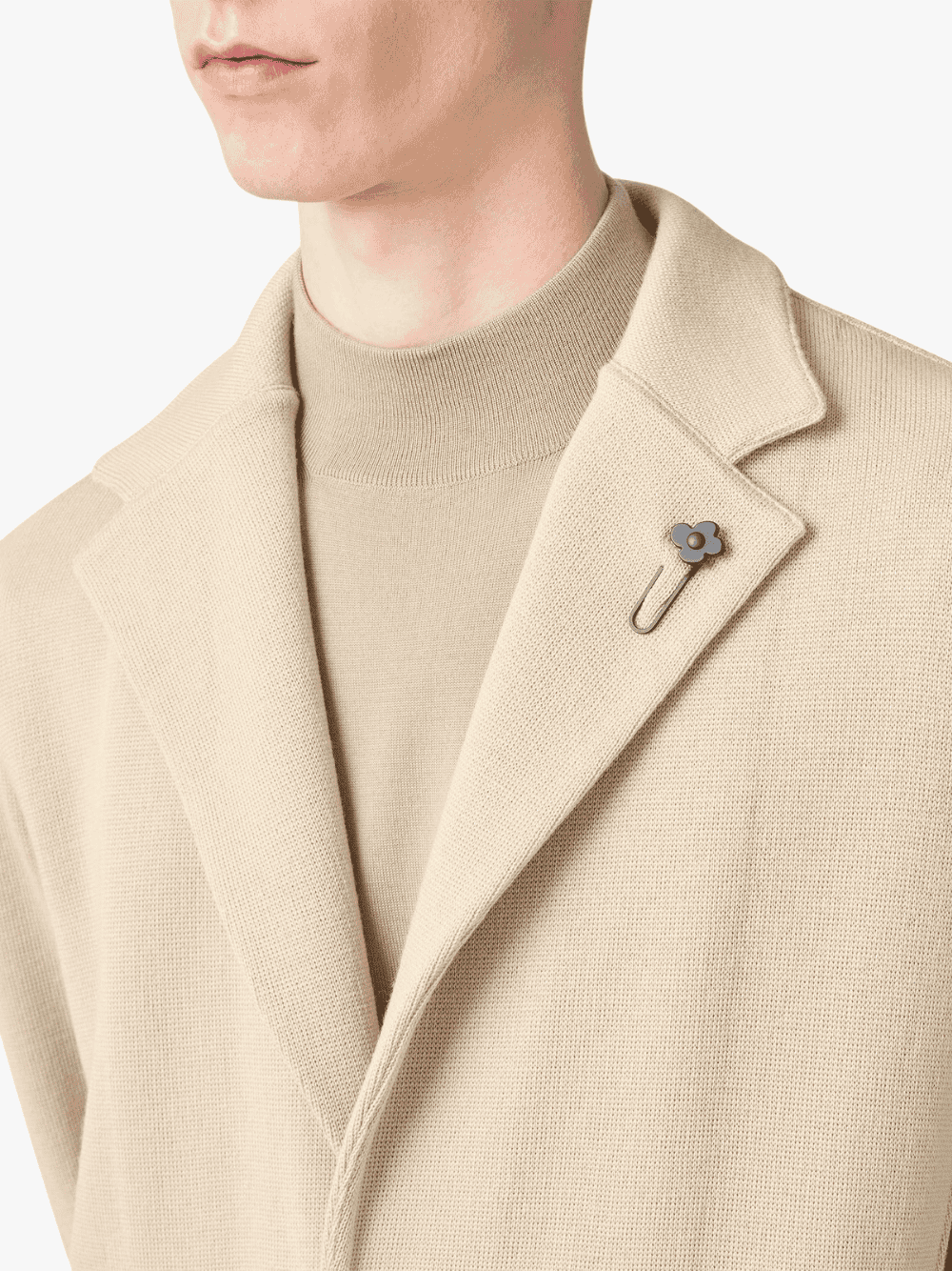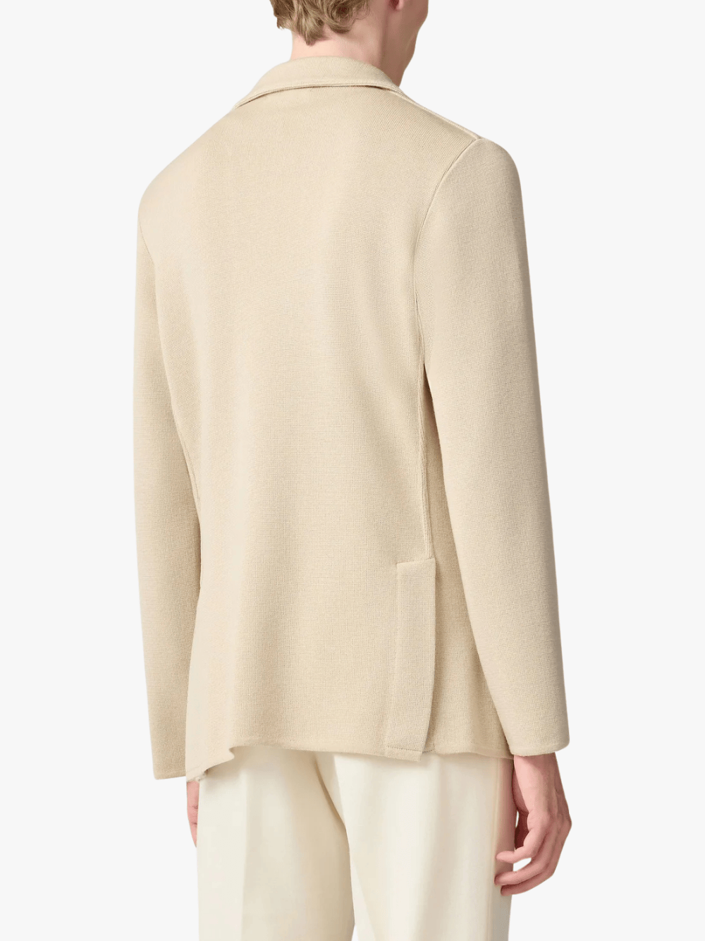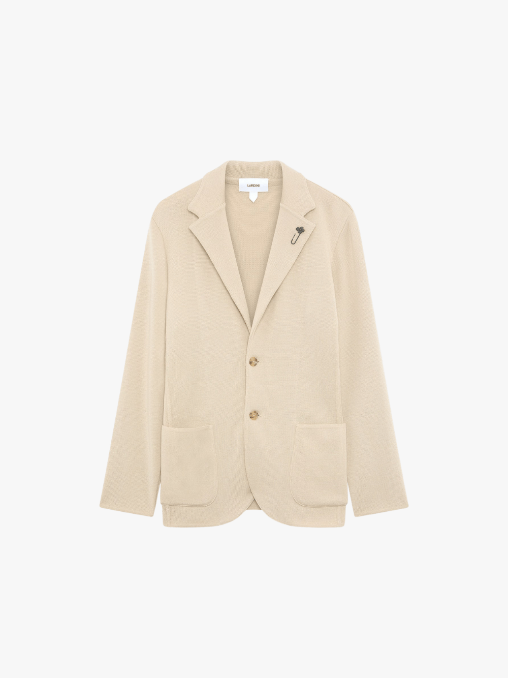 Die Cream Single‑Breasted Two‑Button Knitted Jacket in Creme von Lardini mit folgenden Merkmalen: