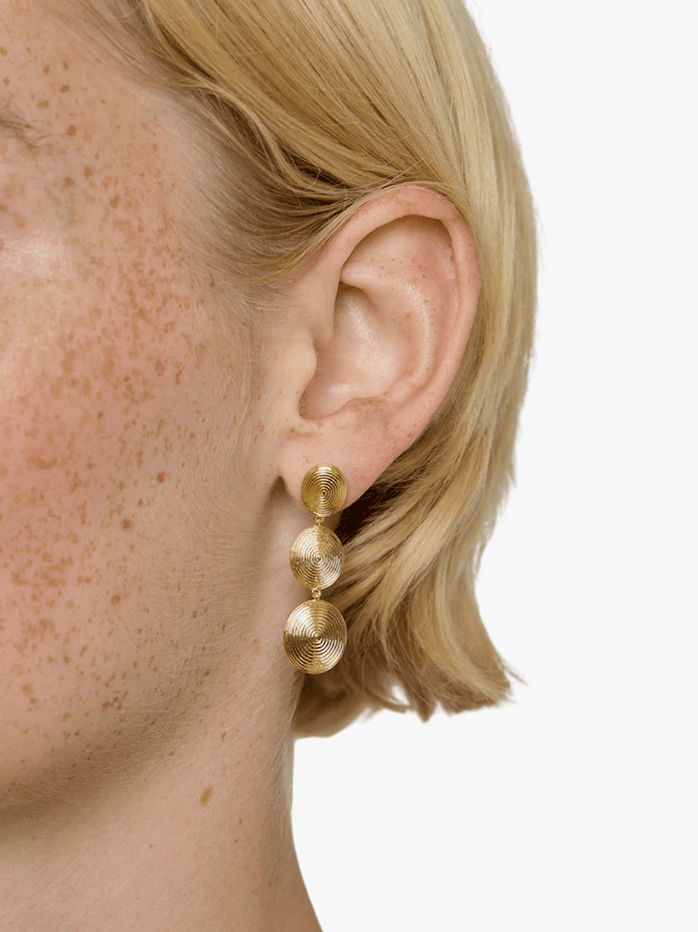 • Statement-Ohrringe mit drei übereinander angeordneten Spiralscheiben für eine dynamische, fließende Silhouette