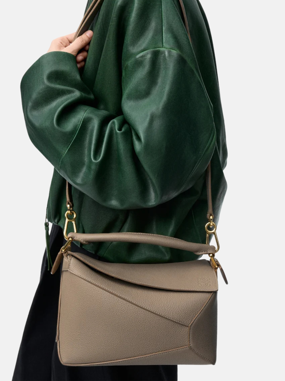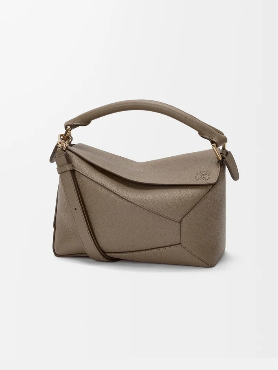 Kleine Puzzle Edge Tasche aus weichem, genarbtem Kalbsleder von Loewe mit folgenden Eigenschaften:
