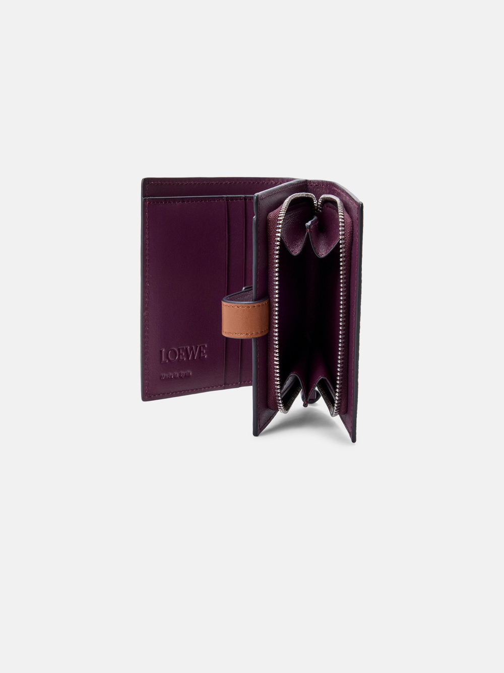 Die kompakte Brieftasche mit Reißverschluss in rauchigem Mauve/Eichhörnchenbraun aus weichem Kalbsleder von Loewe mit folgenden Merkmalen: