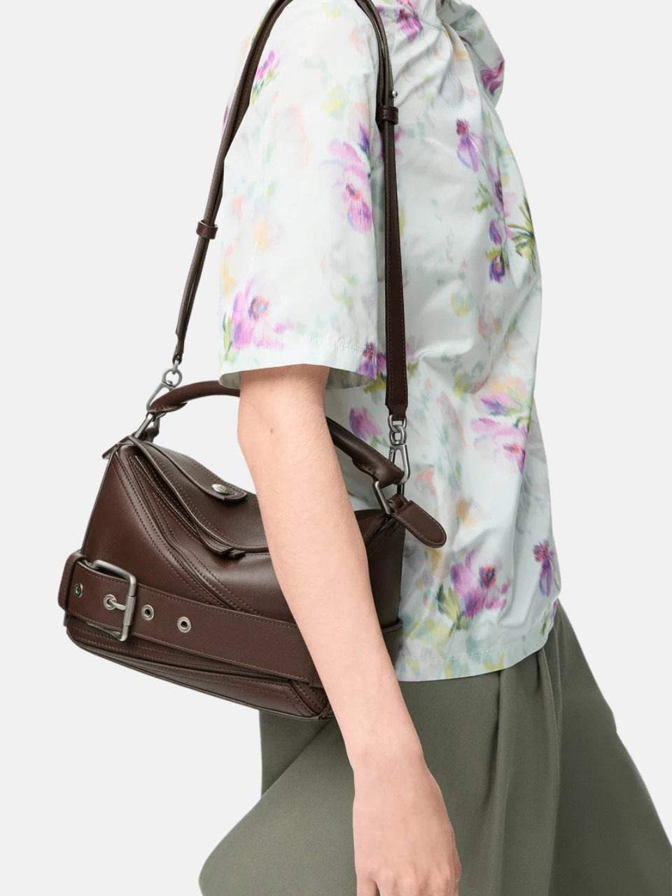 Kurze Puzzle Biker Tasche aus glänzendem Kalbslede von Loewe mit folgenden Eigenschaften: