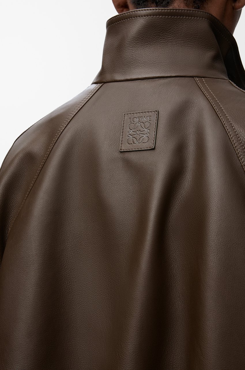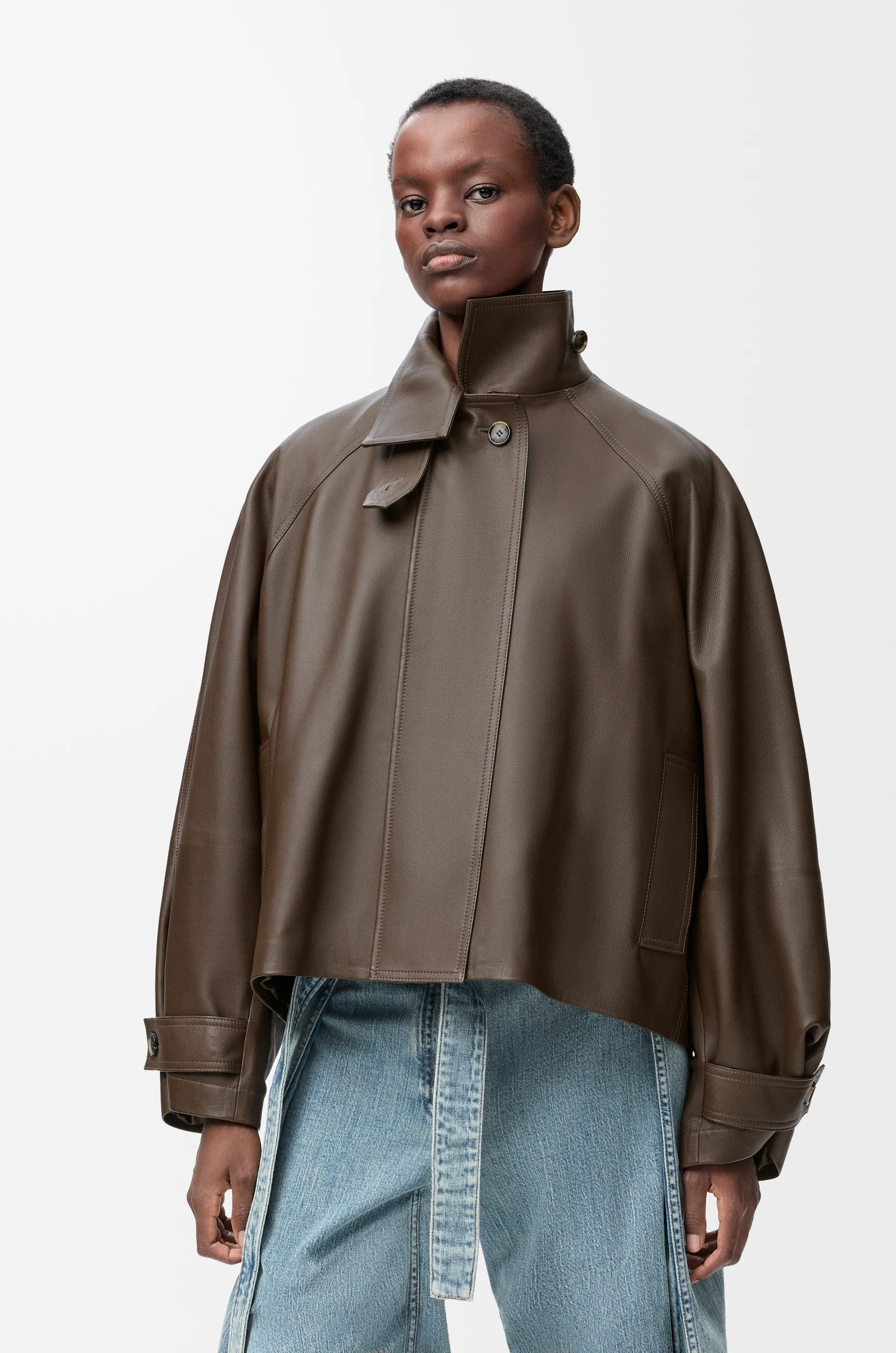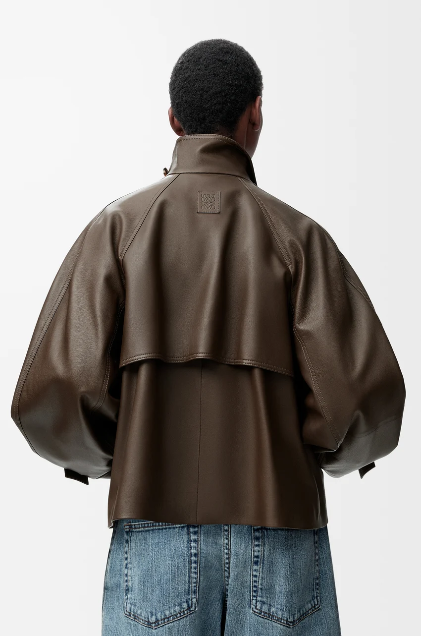 Der kurze Parka aus Kalbsnappaleder von LOEWE in Olivgrün mit folgenden Merkmalen: