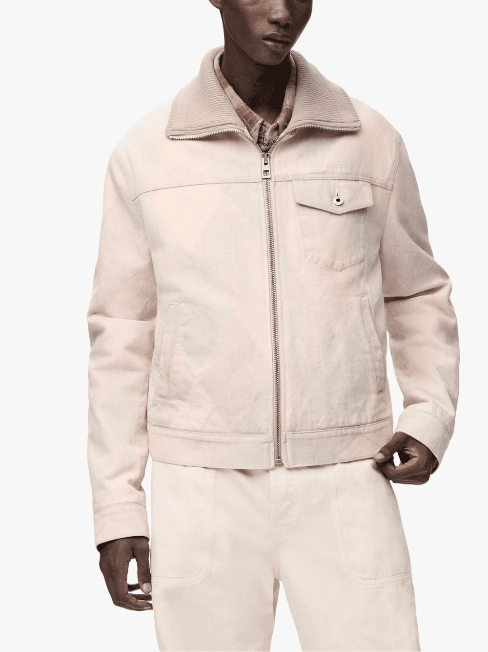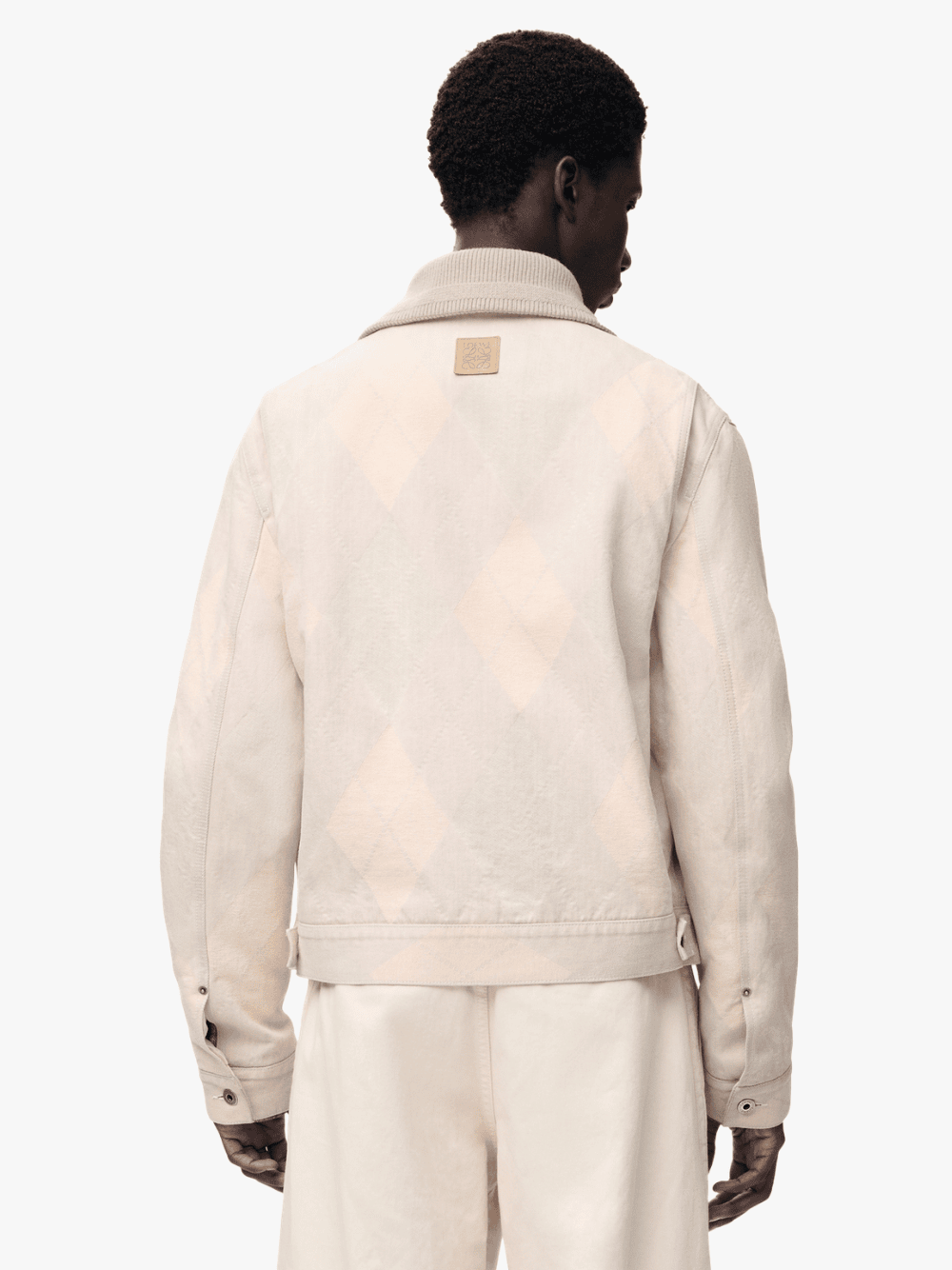 • Hergestellt aus mittelgewichtiger Baumwoll‑Denim‑Qualität mit feinem Argyle‑Jacquard‑Muster für strukturierte Textur.