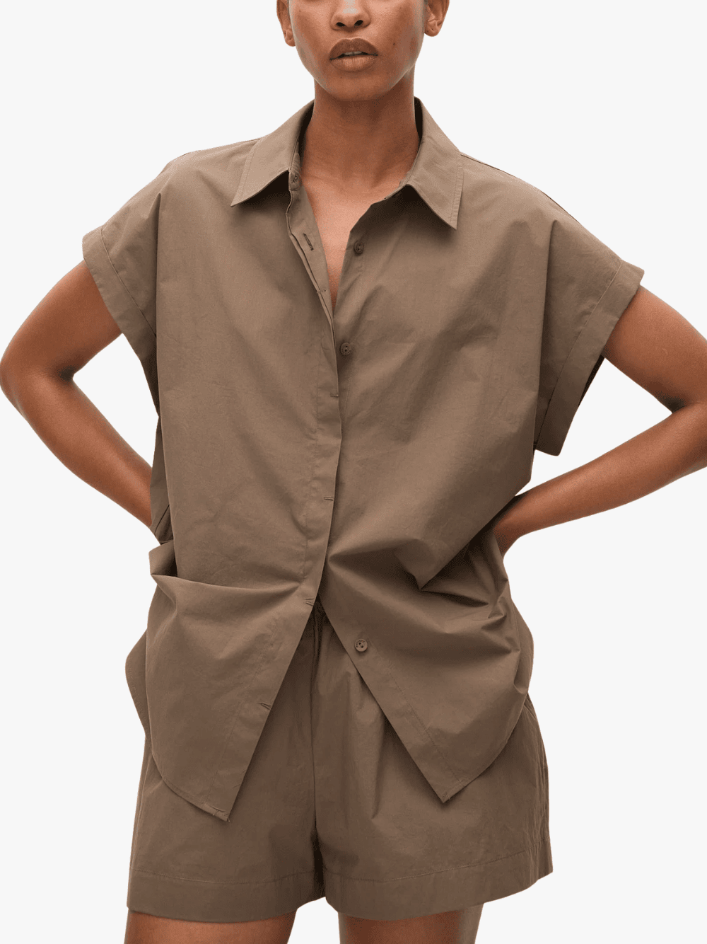 • Ärmelloses, entspanntes Hemd-Design mit moderner, klarer Silhouette für sommerliche Looks.