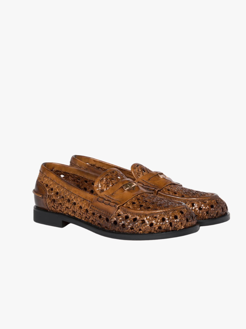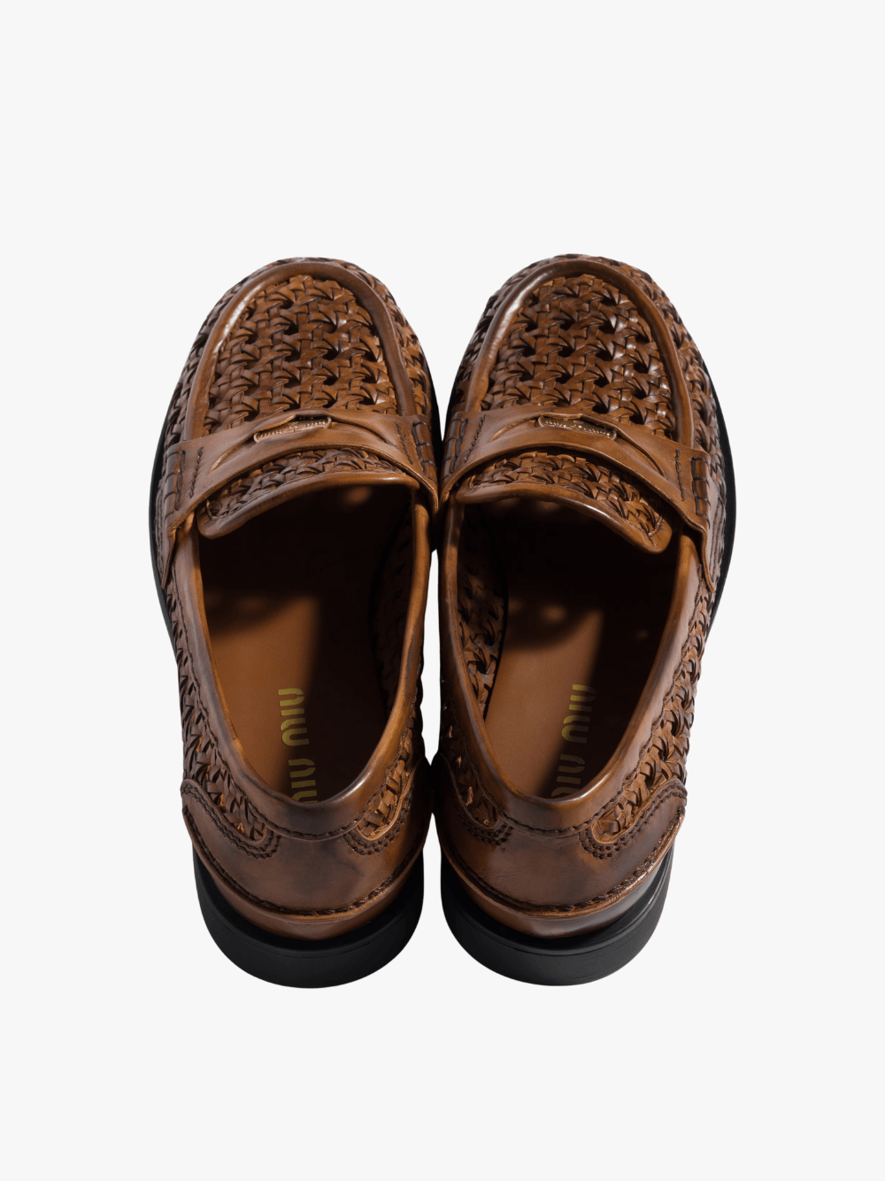 Die Loafer aus gewebtem Leder in Cognac von Miu Miu mit folgenden Merkmalen: