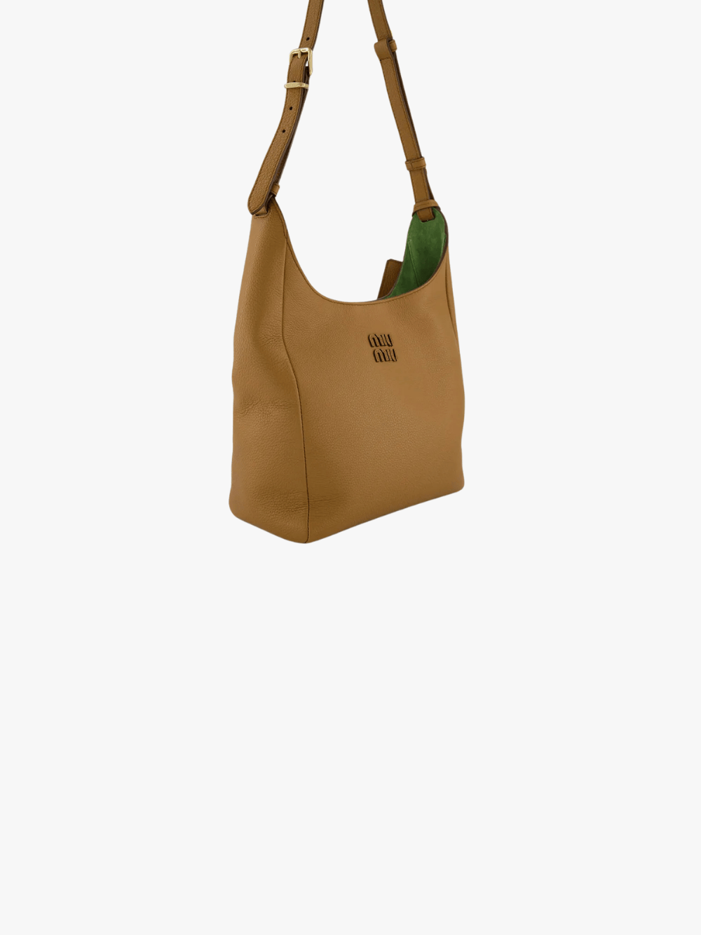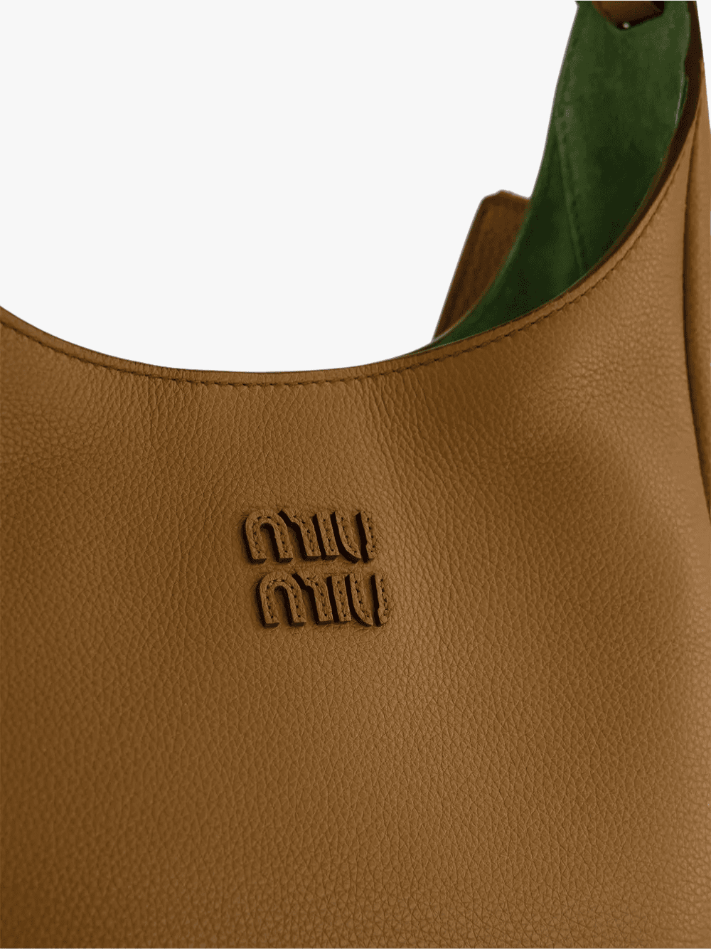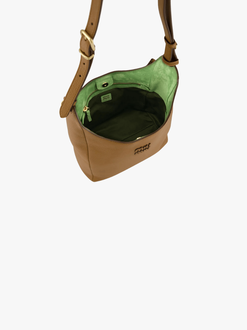 Die Logo‑Patch Lederschultertasche in Braun von Miu Miu mit folgenden Merkmalen: