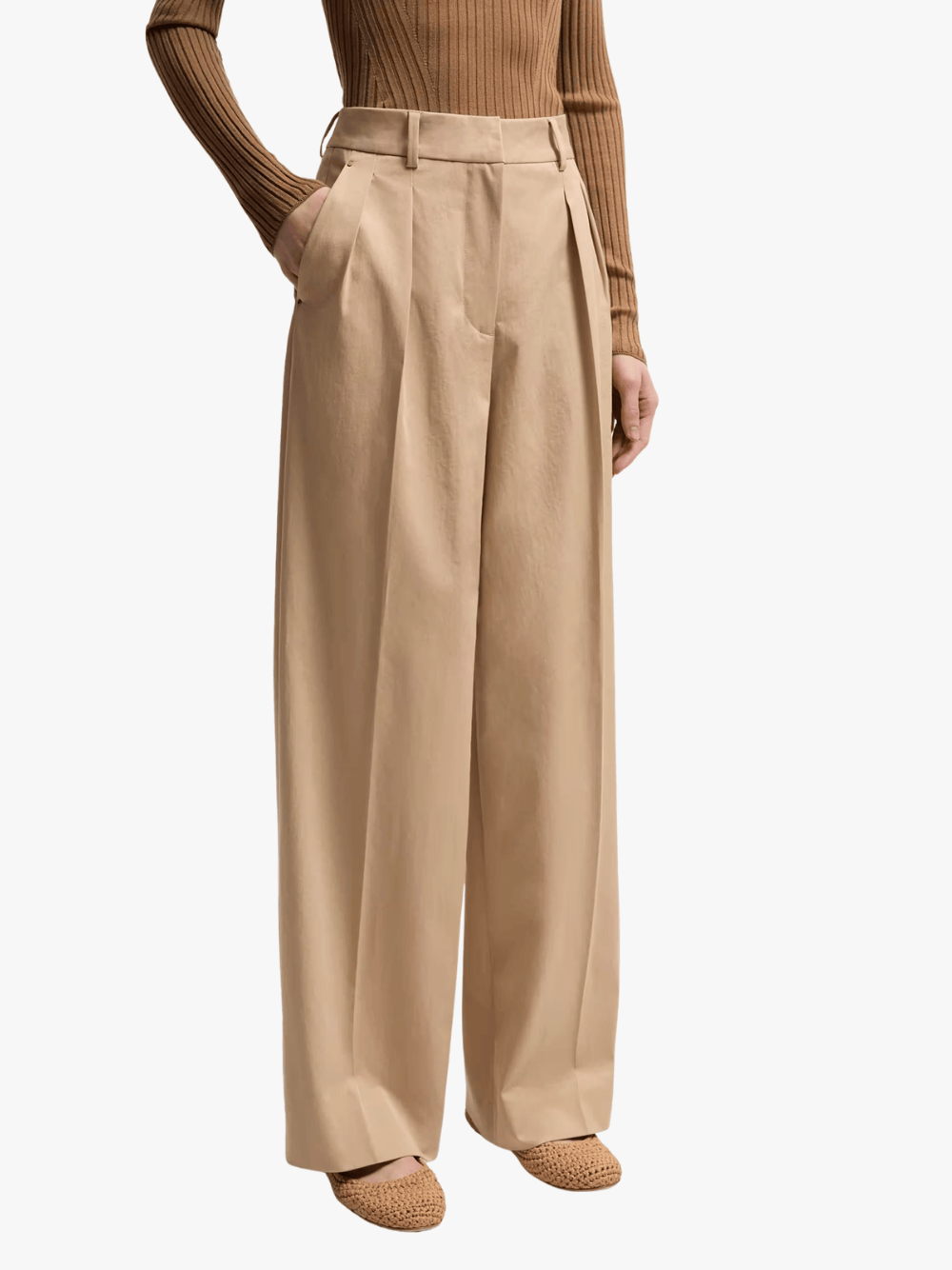 • Weite, weitgeschnittene Silhouette mit eleganten Frontfalten für einen entspannten, modernen Look.