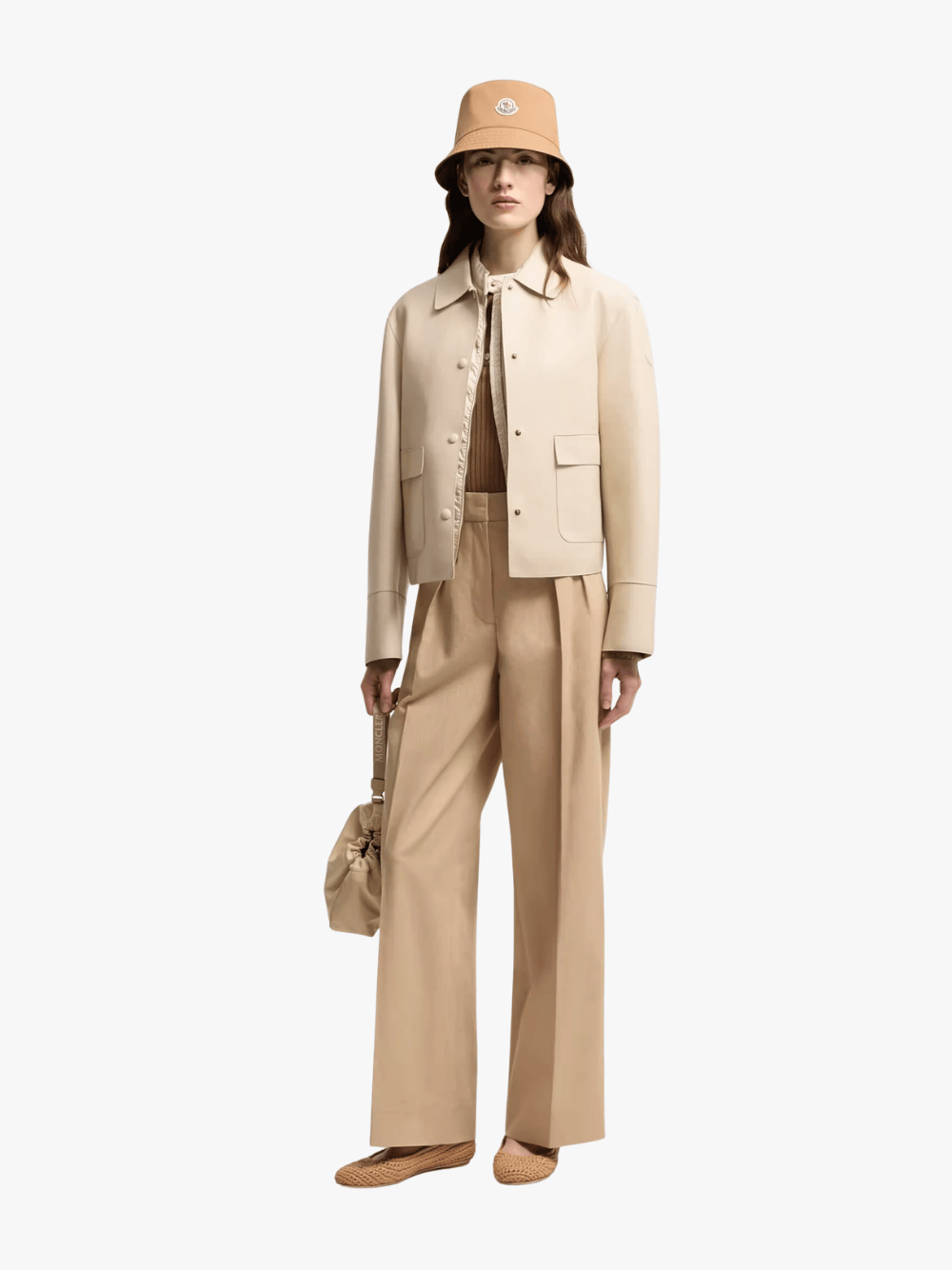 Die Baumwoll-Gabardine-Hose mit weitem Bein in Beige von Moncler mit folgenden Merkmalen: