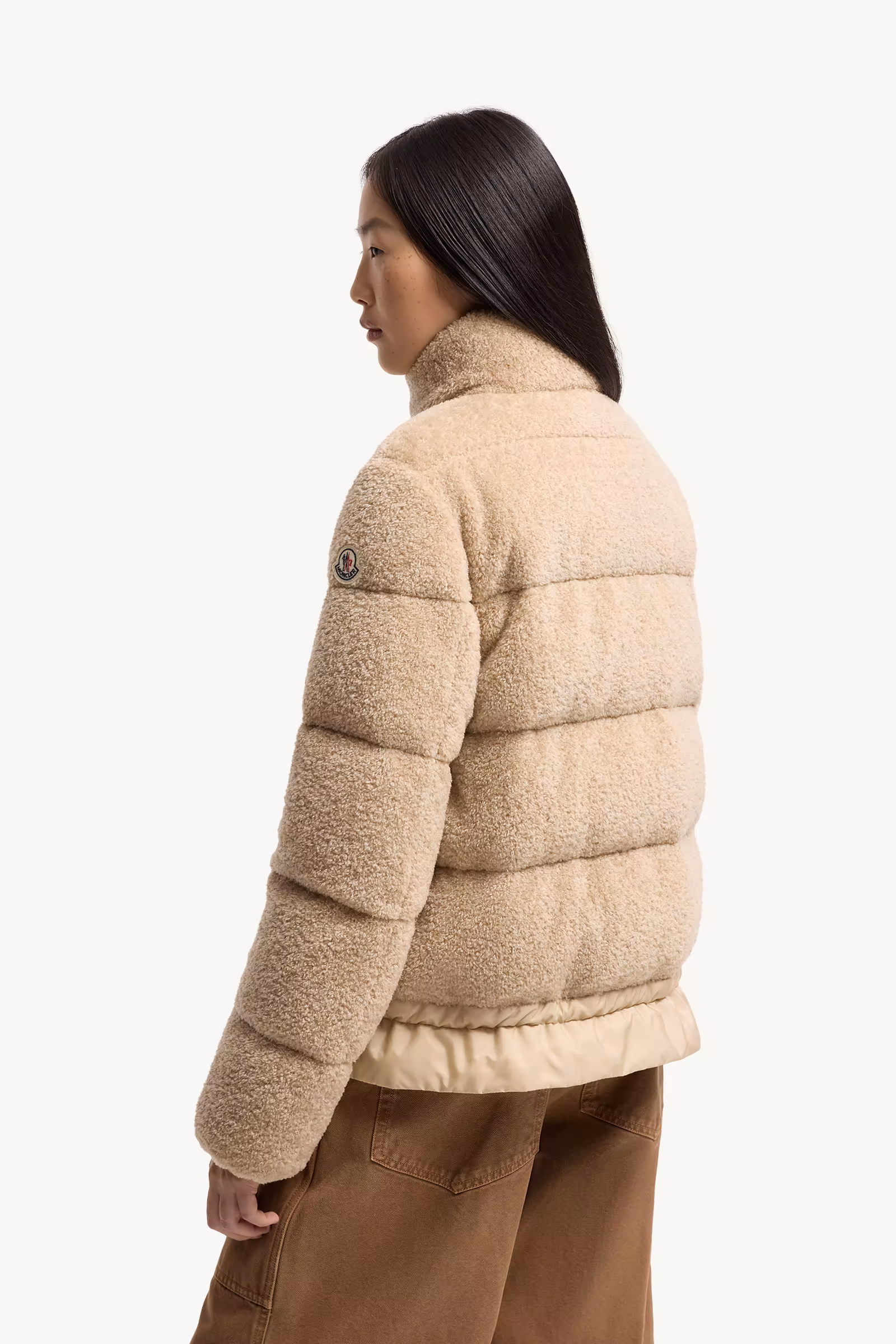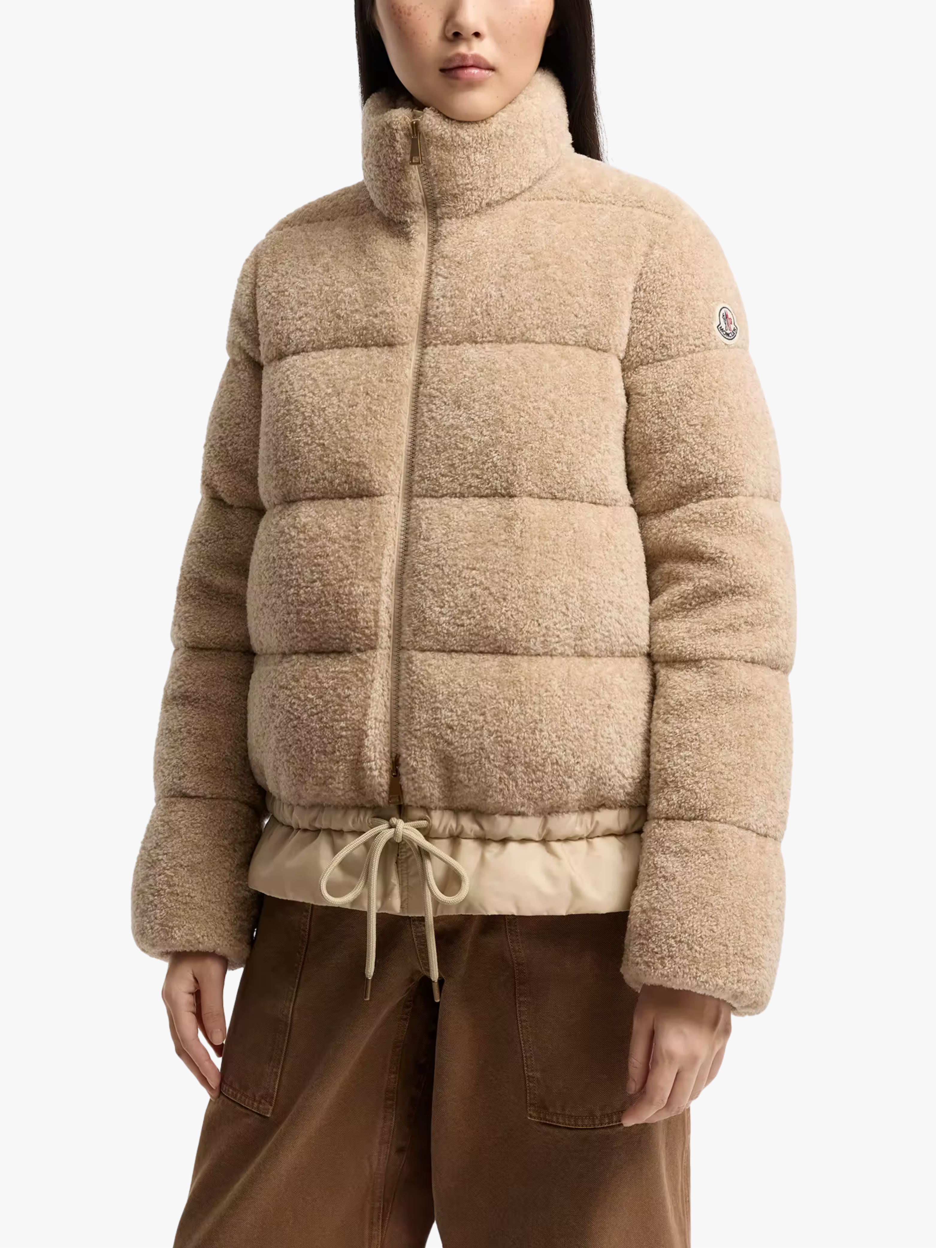 Die Cedre Teddy Kurz-Daunenjacke von Moncler in Light Beige mit folgenden Merkmalen: