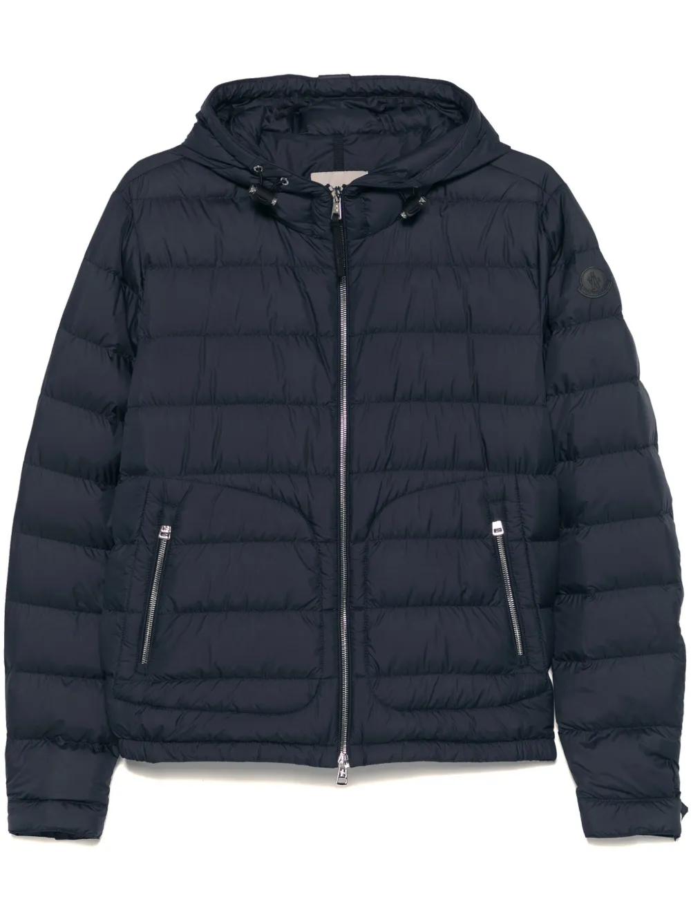 Gesteppte Sestriere Jacke von Moncler mit folgenden Eigenschaften: Marineblau, Zwei-Wege-Reißverschluss vorne, Kapuze mit Kordelzug, zwei Seitentaschen mit Reißverschluss, Manschetten mit Druckknöpfen. Hersteller: Moncler S.p.A, Via Stendhal 47, 20144 Mailand, privacy@moncler.com