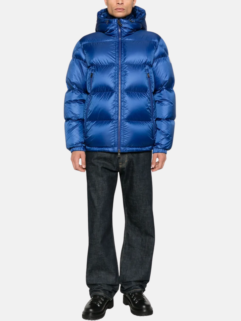 Die Kapuzen‑Daunenjacke in Schwarz von Moncler mit folgenden Merkmalen: