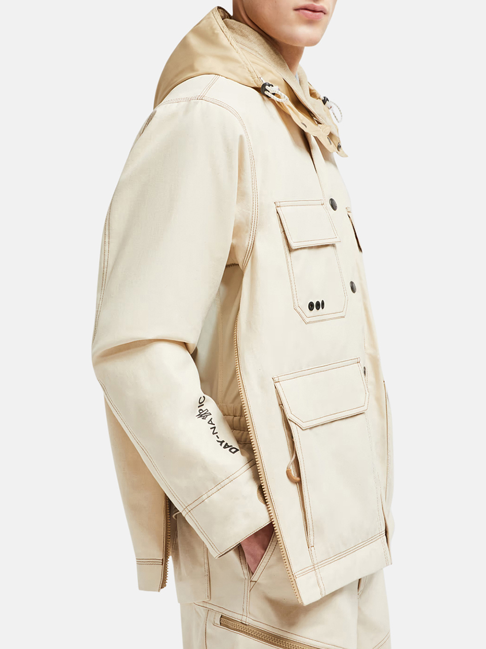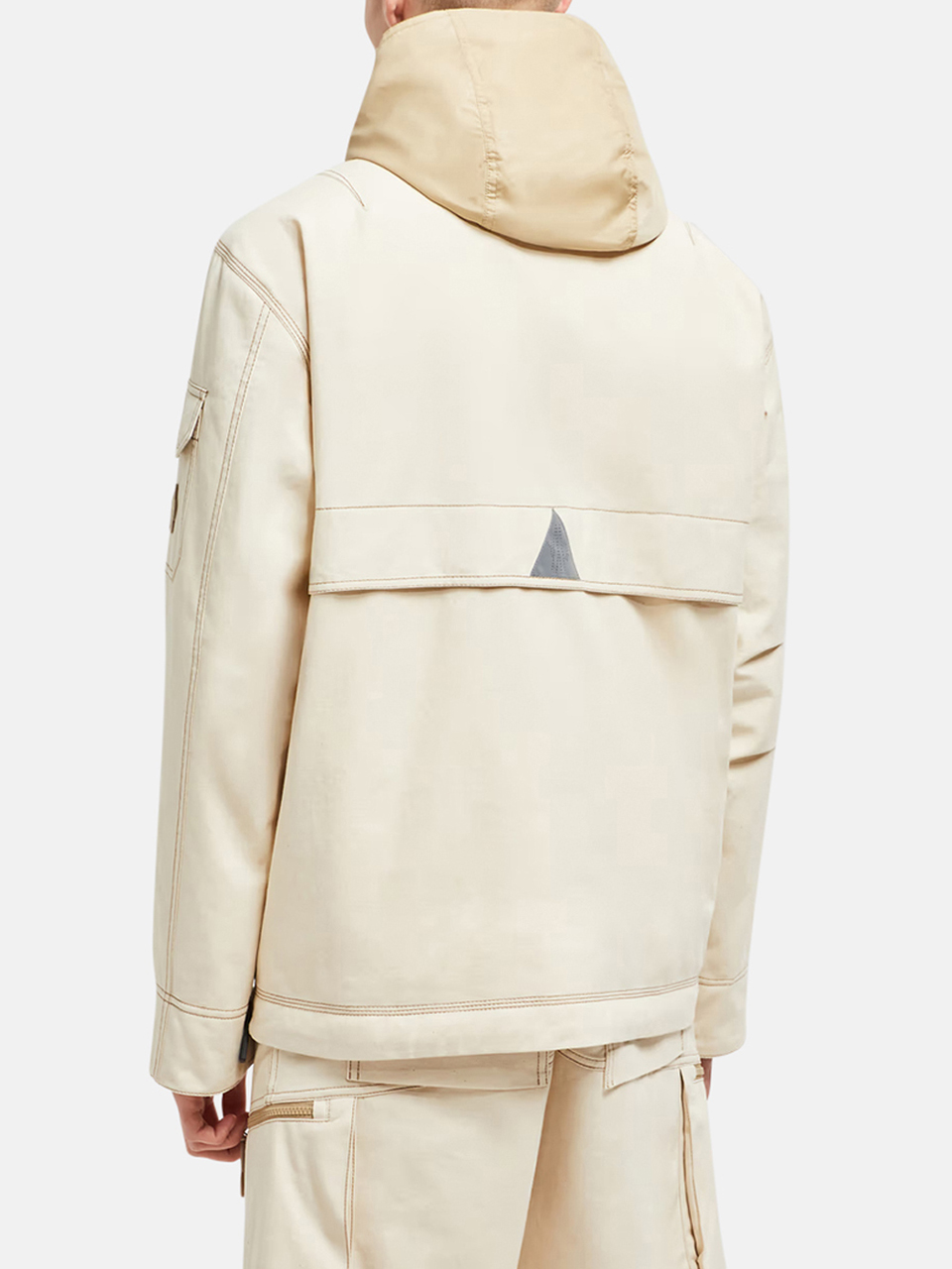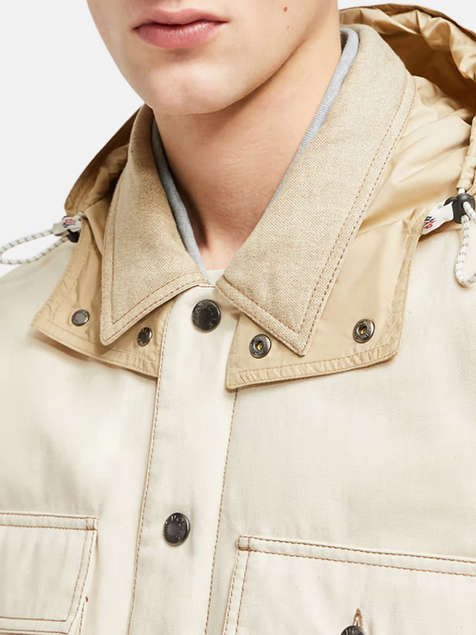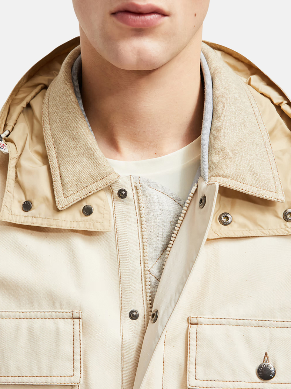 Außenmaterial: 100% Baumwolle; Innenfutter: 100% Polyamid; Kapuze: 100% Polyamid; Kragen: 86% Polyester, 11% Polyamid, 3% Elasthan; Polster: 90% Daune, 10% Feder