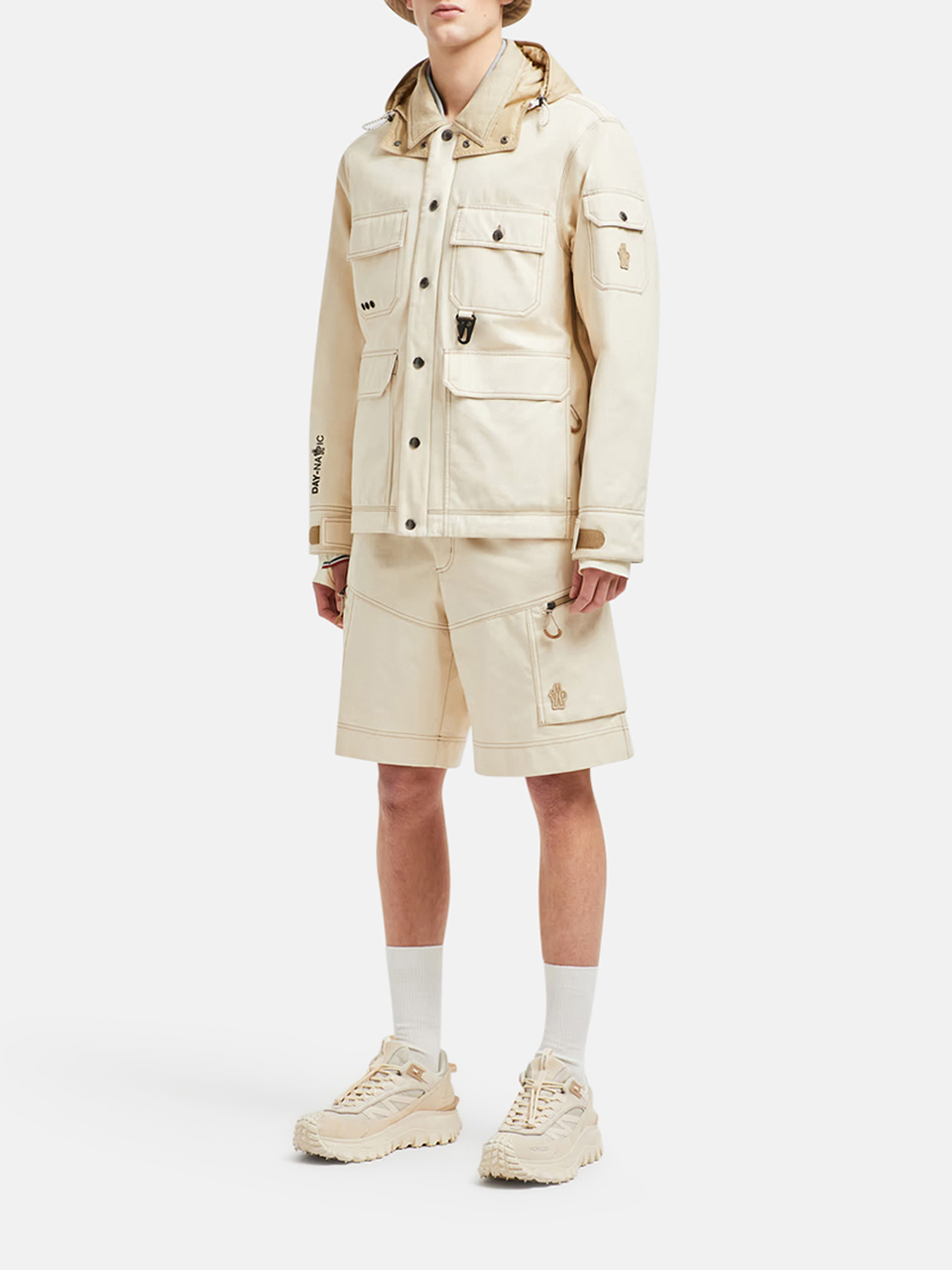 Moncler Kelpius Daunenjacke mit folgenden Eigenschaften: gepolsterte Ärmel, abnehmbare, herausziehbare Kapuze mit Futter aus Rainwear, Kragen aus Leinen mit Rippstrickfutter, Druckknopf- und Reißverschluss auf der Vorderseite und an der Seite, Taschen mit Reißverschluss, Brusttaschen mit Knopfverschluss, verstellbare Ärmelbündchen, Karabiner vorne, Logo-Print, Logoaufnäher.