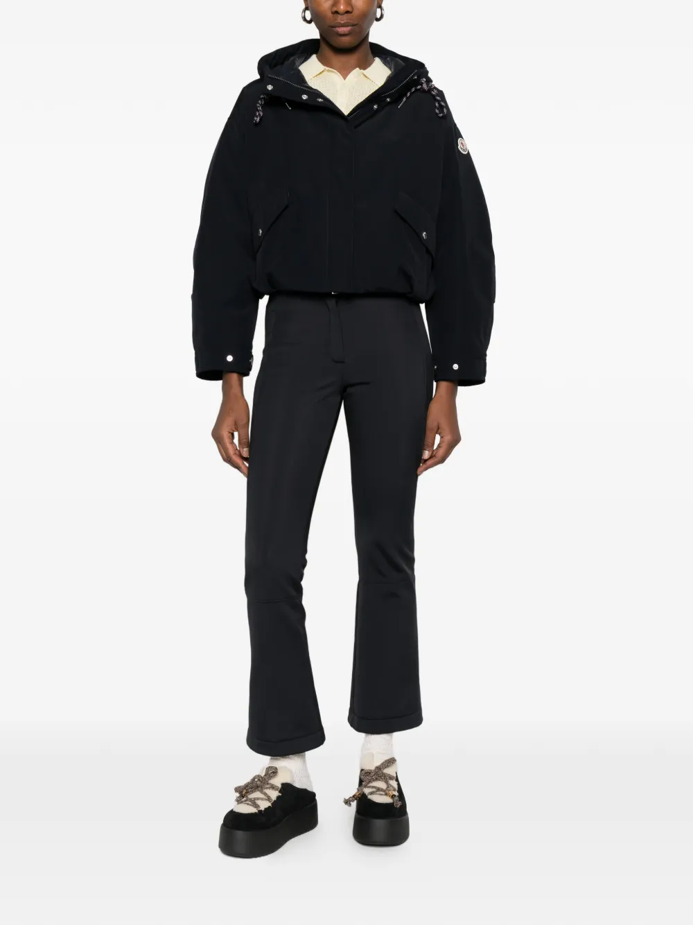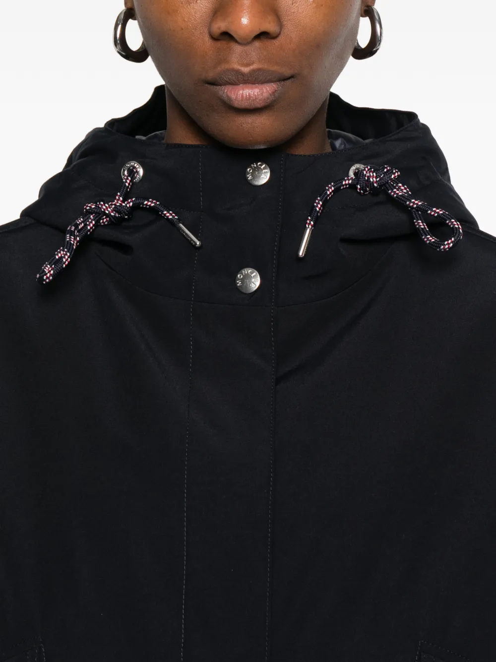 Die kurze Daunenjacke mit Kapuze in Navy von Moncler mit folgenden Merkmalen: