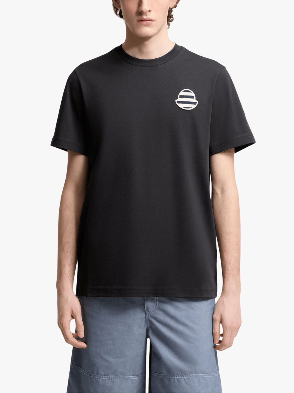 Das Striped Logo Cotton Jersey T‑Shirt in Schwarz von Moncler mit folgenden Merkmalen:
