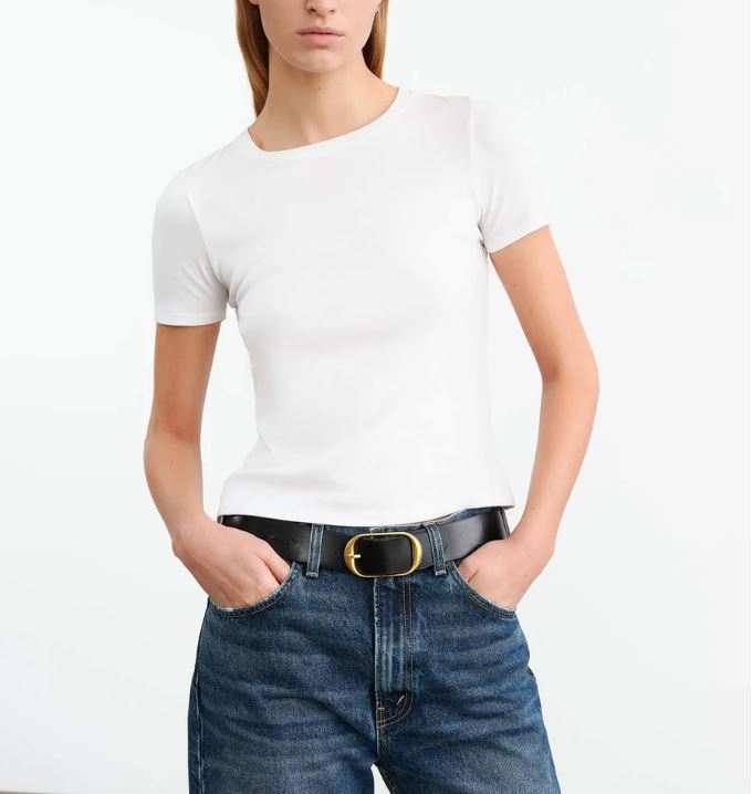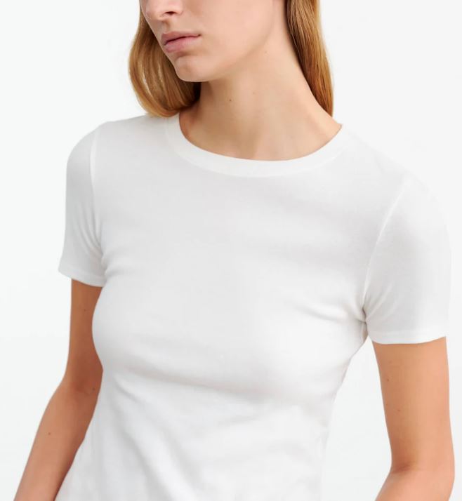 • Schlanker, körpernaher Schnitt mit klassischem Rundhalsausschnitt – ideal für puristische, minimalistische Looks.