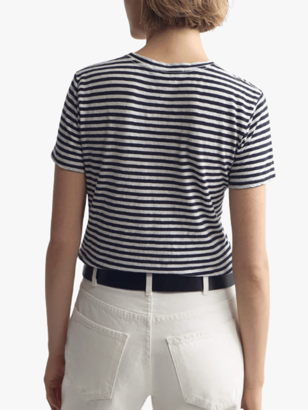 Das Lana Crewneck T-Shirt in Weiß/Dark Navy Stripe von Nili Lotan mit folgenden Merkmalen: