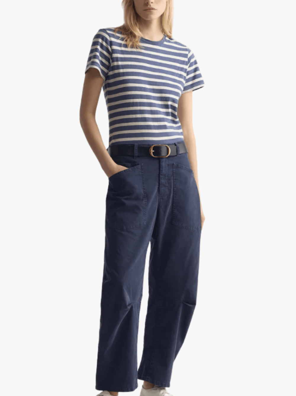 • Gefertigt aus hochwertigem, gestreiftem japanischem Baumwoll‑Lyocell‑Jersey für ein weiches, atmungsaktives Tragegefühl.