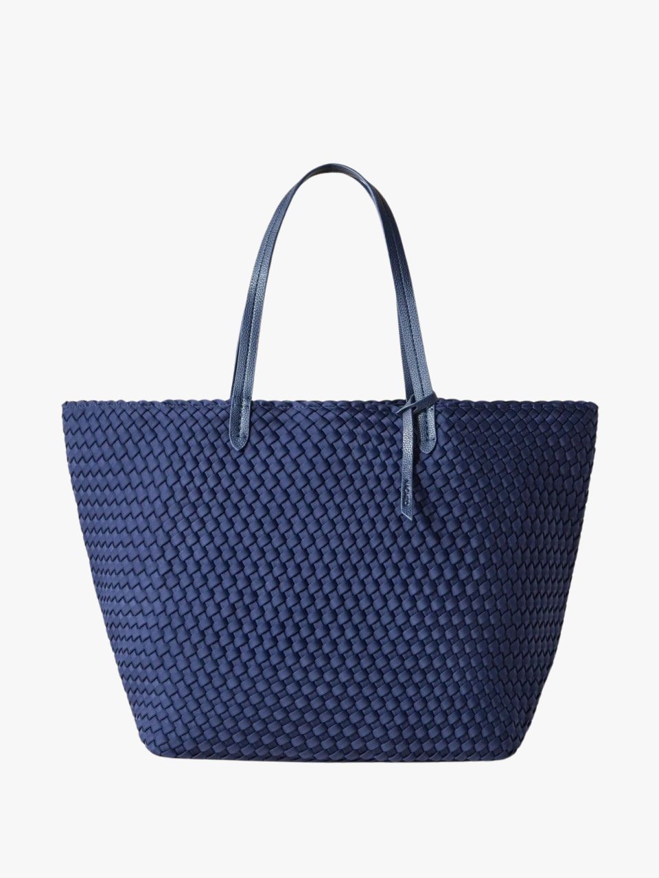 Handtasche von Naghedi mit folgenden Eigenschaften: handgewebtes Neopren, Innentaschen, abwaschbares Nylonfutter, Reißverschluss.