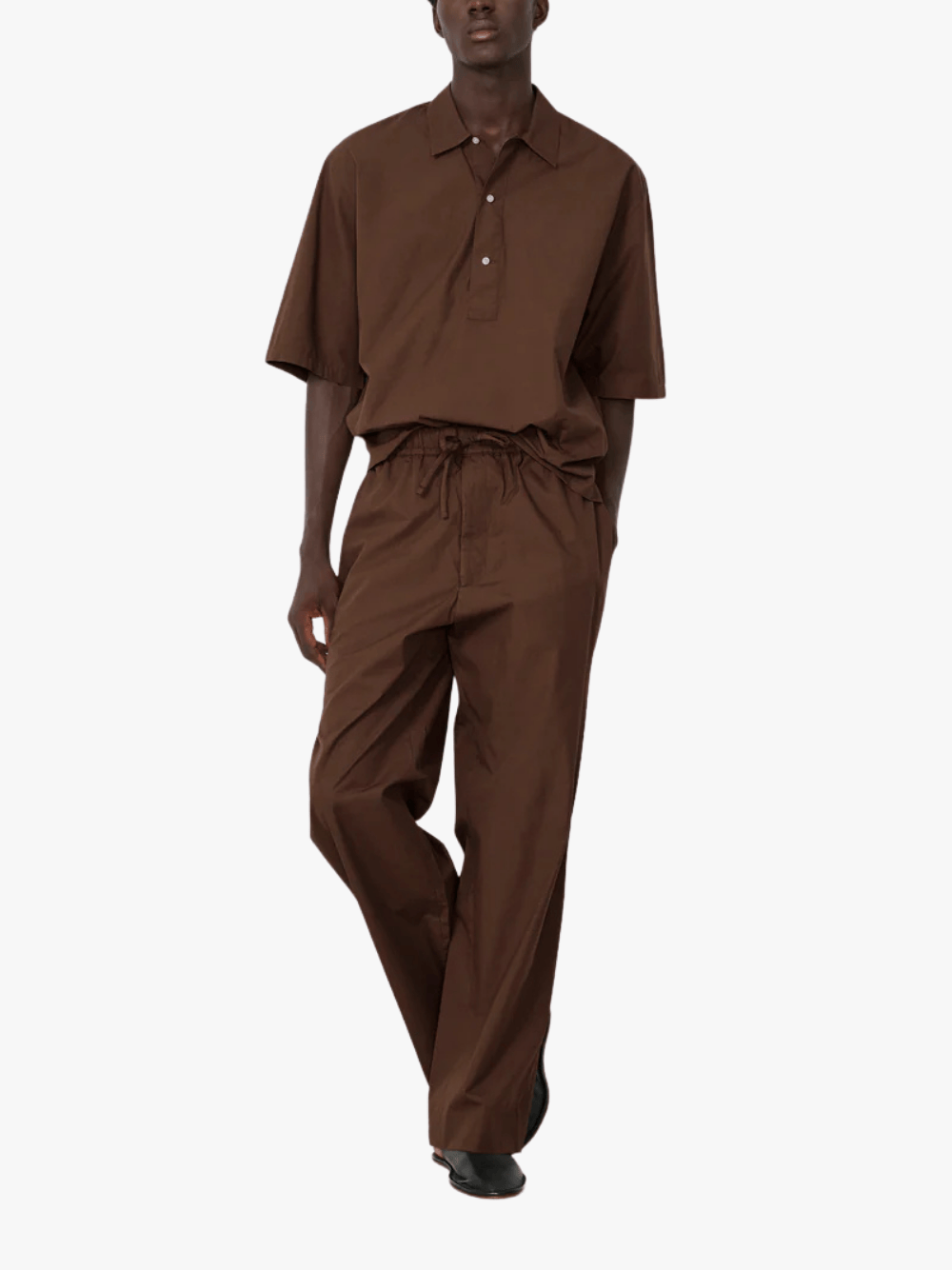 • Halbknopfleiste im Polo-Stil mit klassischem Kragen für eine entspannte, moderne Hemd-Silhouette.