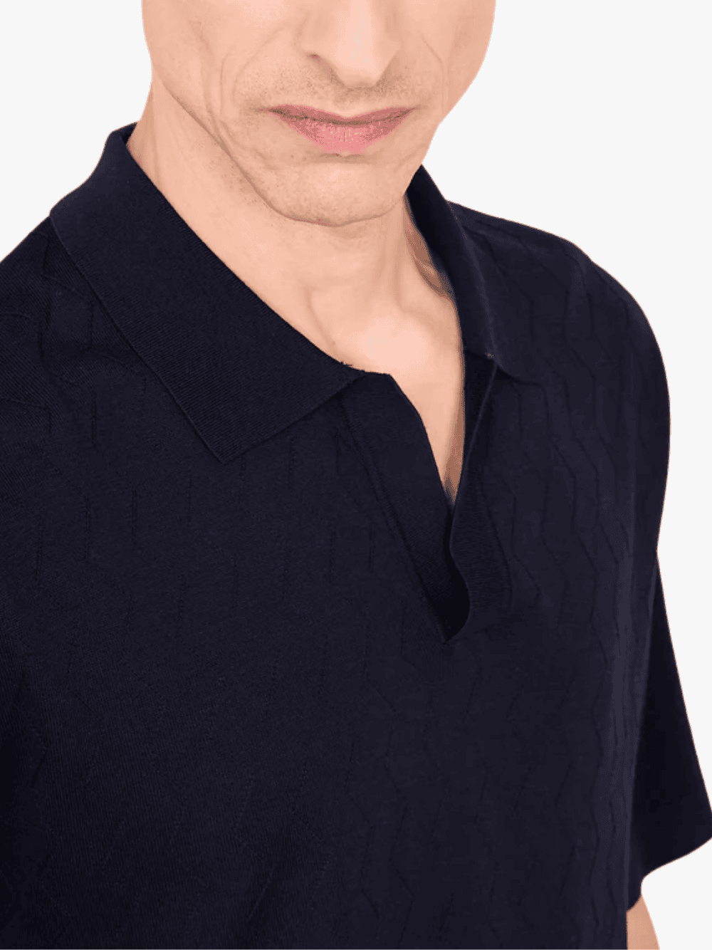 Das Pele Polo Textured Lyocell-Wolle in Navy Ink von Officine Générale mit folgenden Merkmalen: