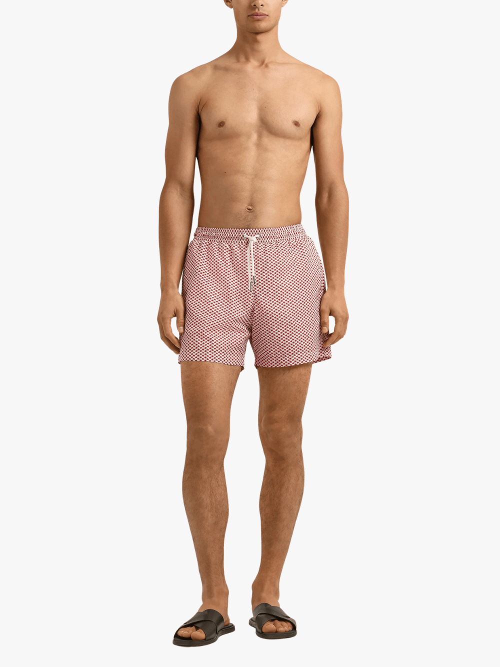 • Klassisch geschnittene Badeshorts mit elastischem Bund und Kordelzug für bequemes Tragen und sicheren Sitz.