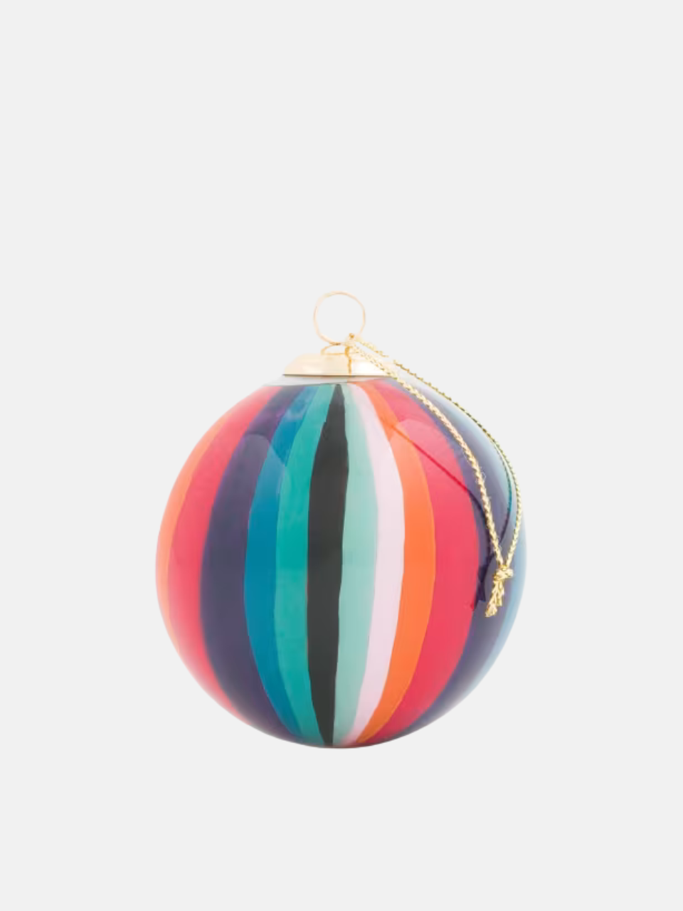 - Handbemalte Glas-Weihnachtskugel mit dem charakteristischen „Artist Stripe“-Muster, das innen sorgfältig aufgetragen wurde.