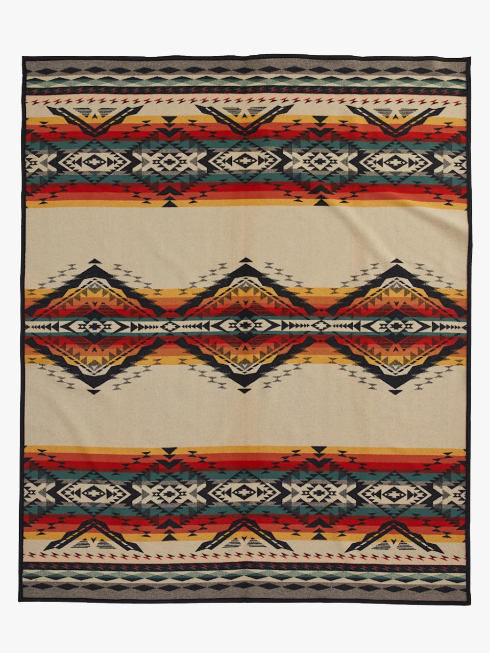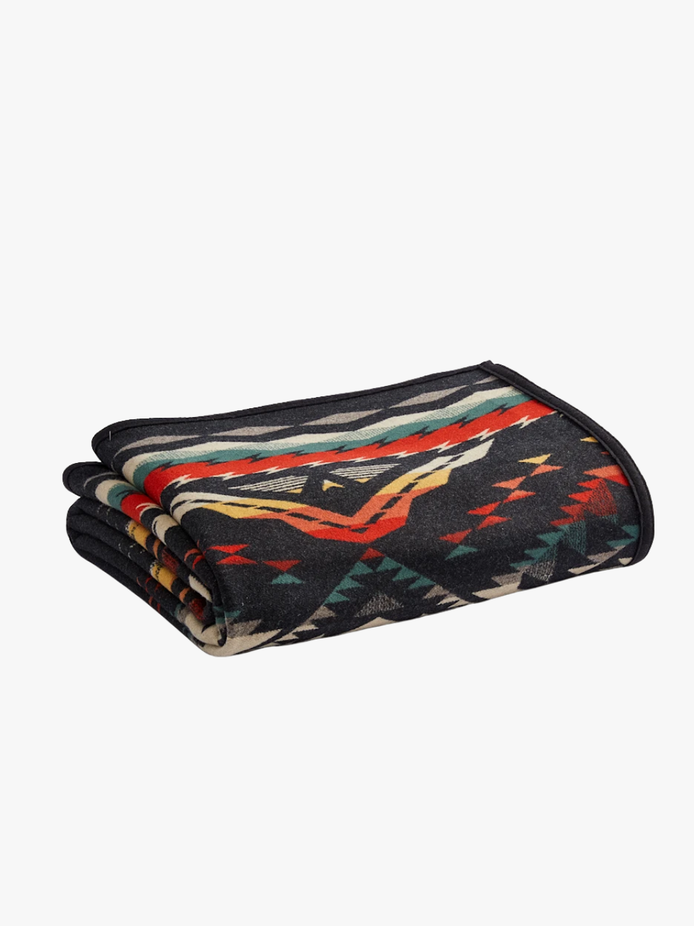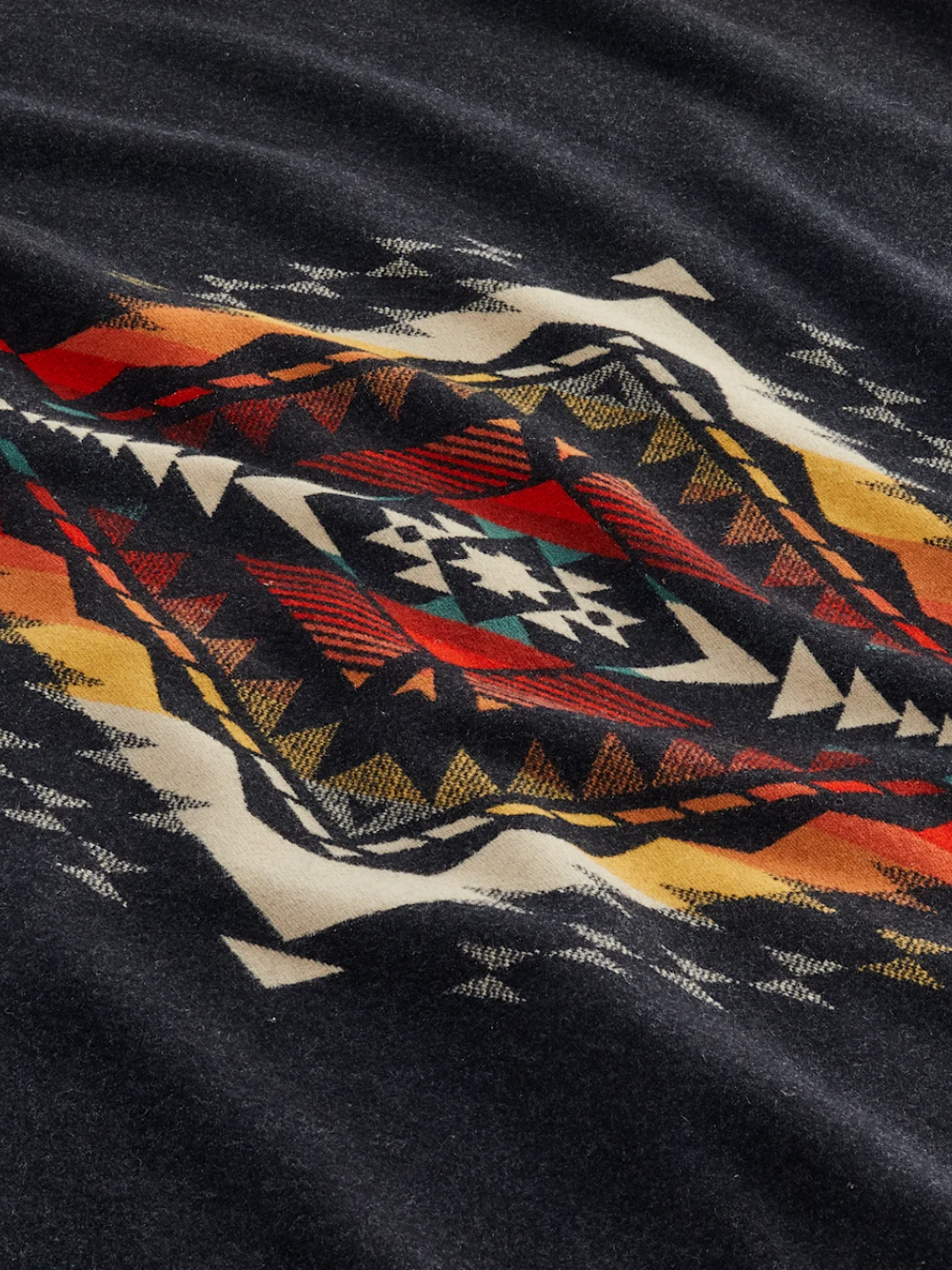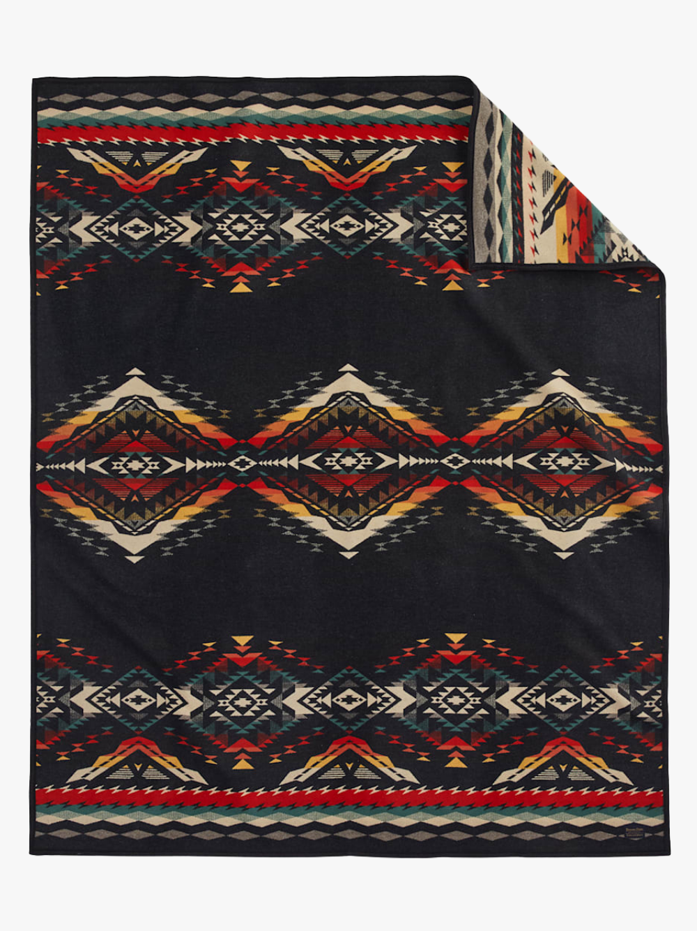 Die Bridge Creek Blanket in „Soft Black / Bridge Creek Muster“ von Pendleton mit folgenden Merkmalen:
