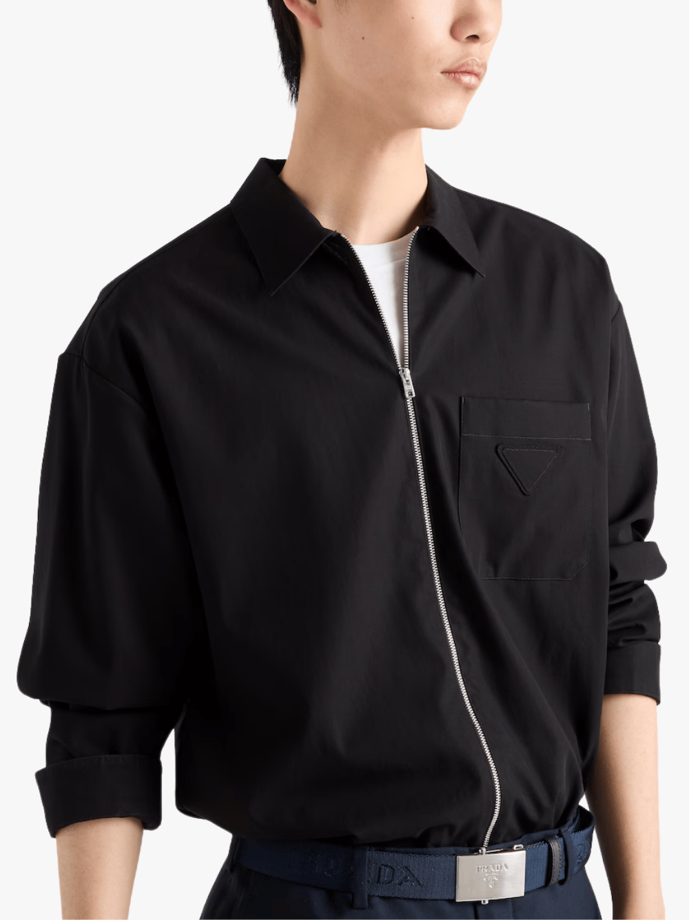 Die Hemd aus Baumwolle mit Reißverschluss in Schwarz von Prada mit folgenden Merkmalen: