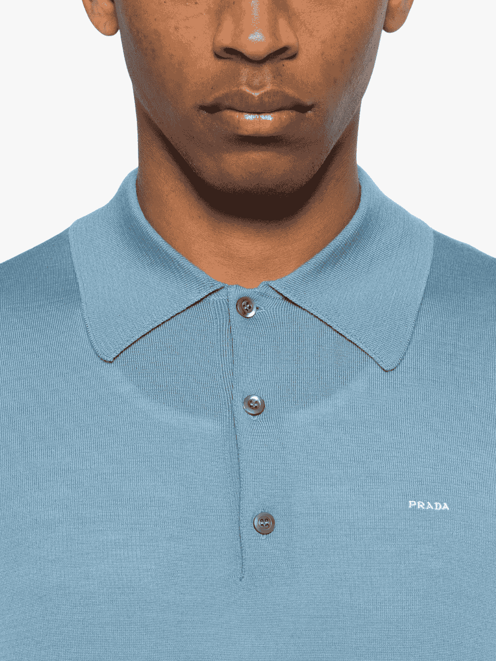 Das Prada Poloshirt mit Knopfleiste in Hellblau von Prada mit folgenden Merkmalen: