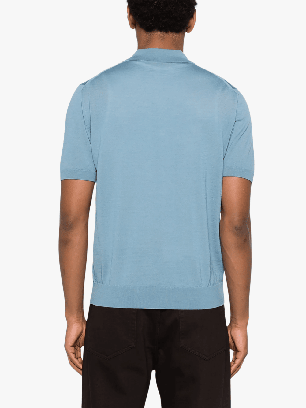 • Klassischer Polokragen mit kurzer Knopfleiste.