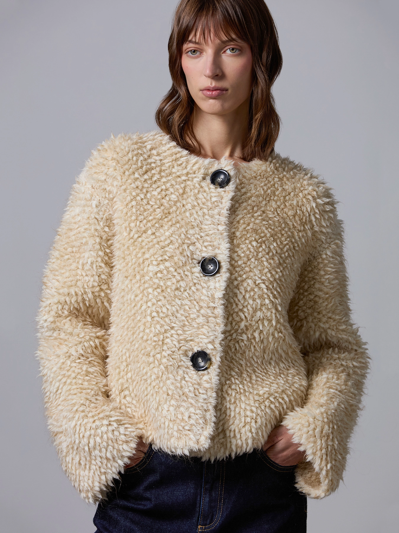 • Relaxed-Fit Jacke mit weichem, „fellähnlichem“ Strick – luxuriös fuzzy Optik und weicher Griff.
