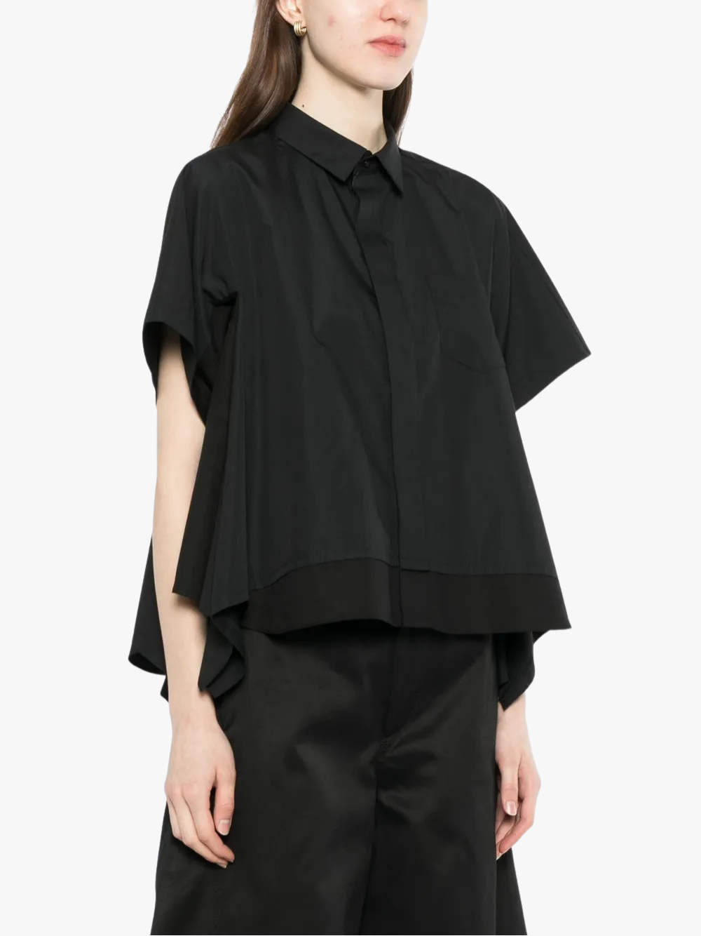 Das Flared Asymmetric Hem Shirt in Schwarz von Sacai mit folgenden Merkmalen: