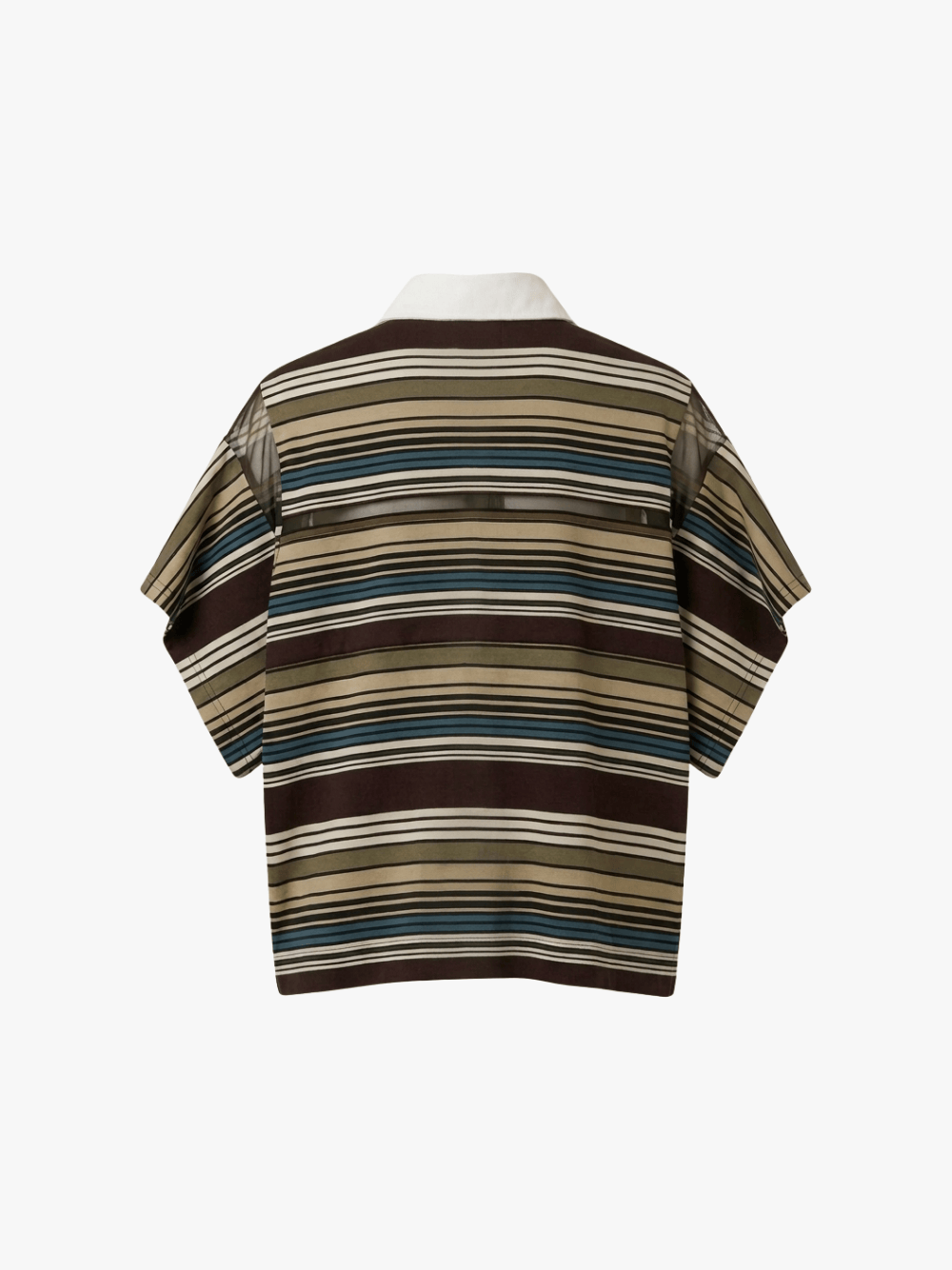 Zarte, transparente Mesh-Einsätze an den Ärmeln und ein dezenter Mesh-Ausschnitt im Brustbereich unterstreichen den typischen, modernen Stil von Sacai.