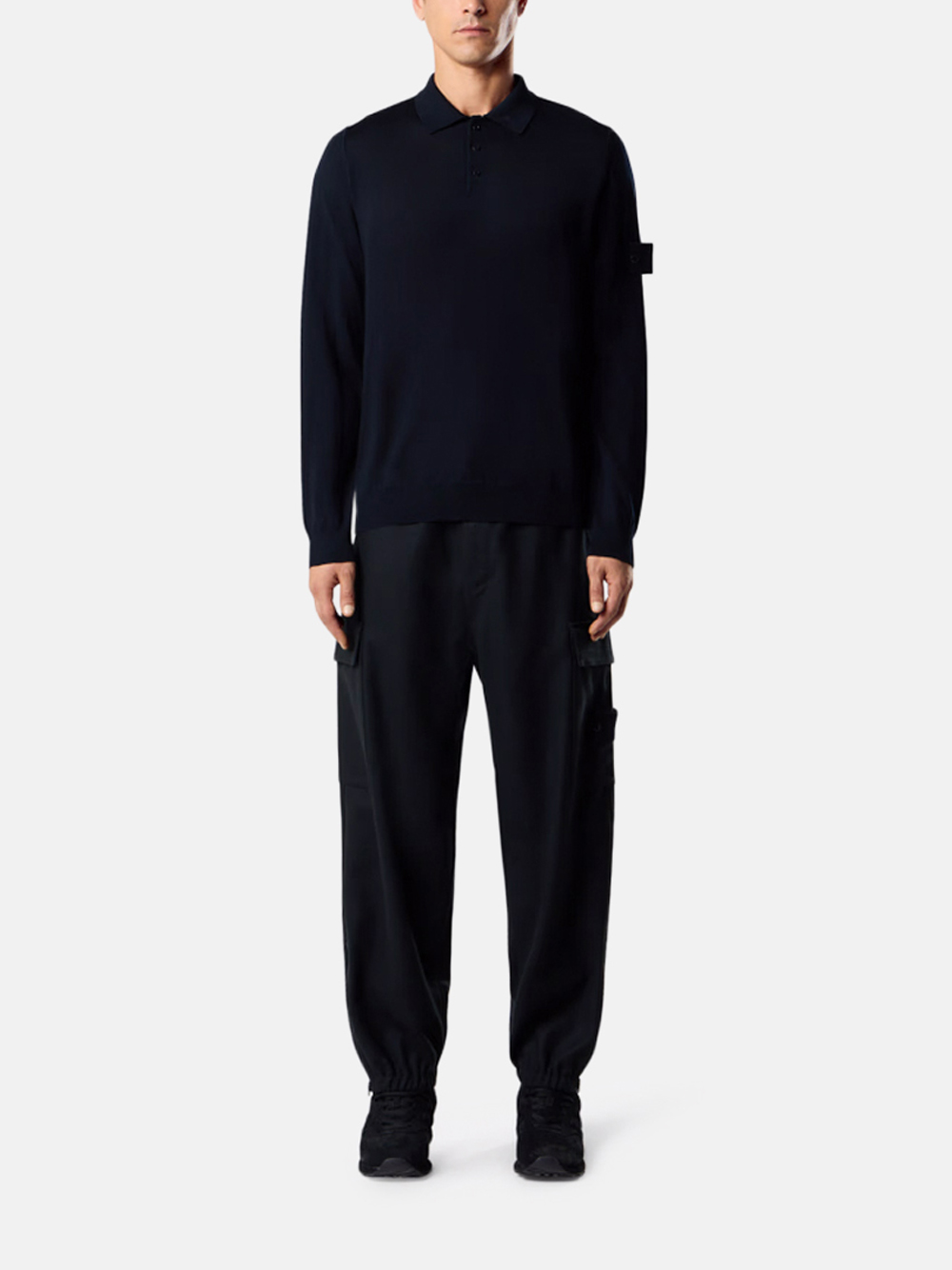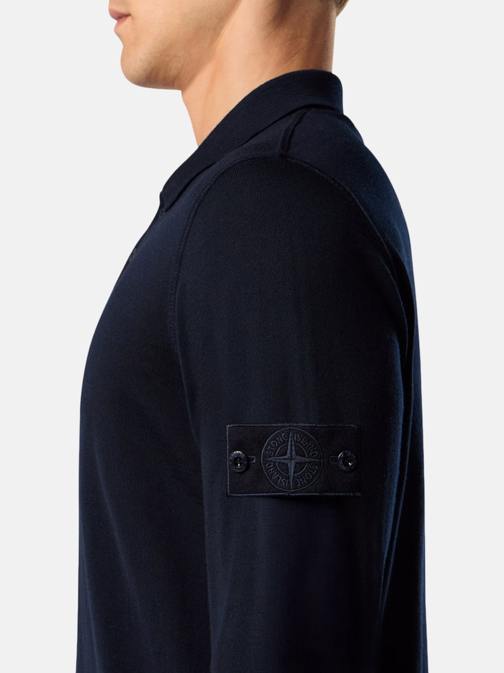 Der Langarm-Polopullover Pure Light RWS Wool von Stone Island Ghost in Navy mit folgenden Merkmalen: