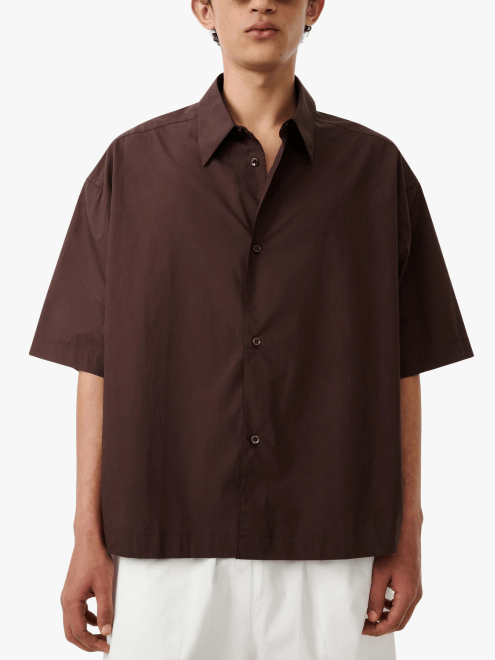 • Kurzärmeliges Hemd aus paper poplin‑Gewebe mit trockenem, knusprigem Griff für ein einzigartiges Tragegefühl.